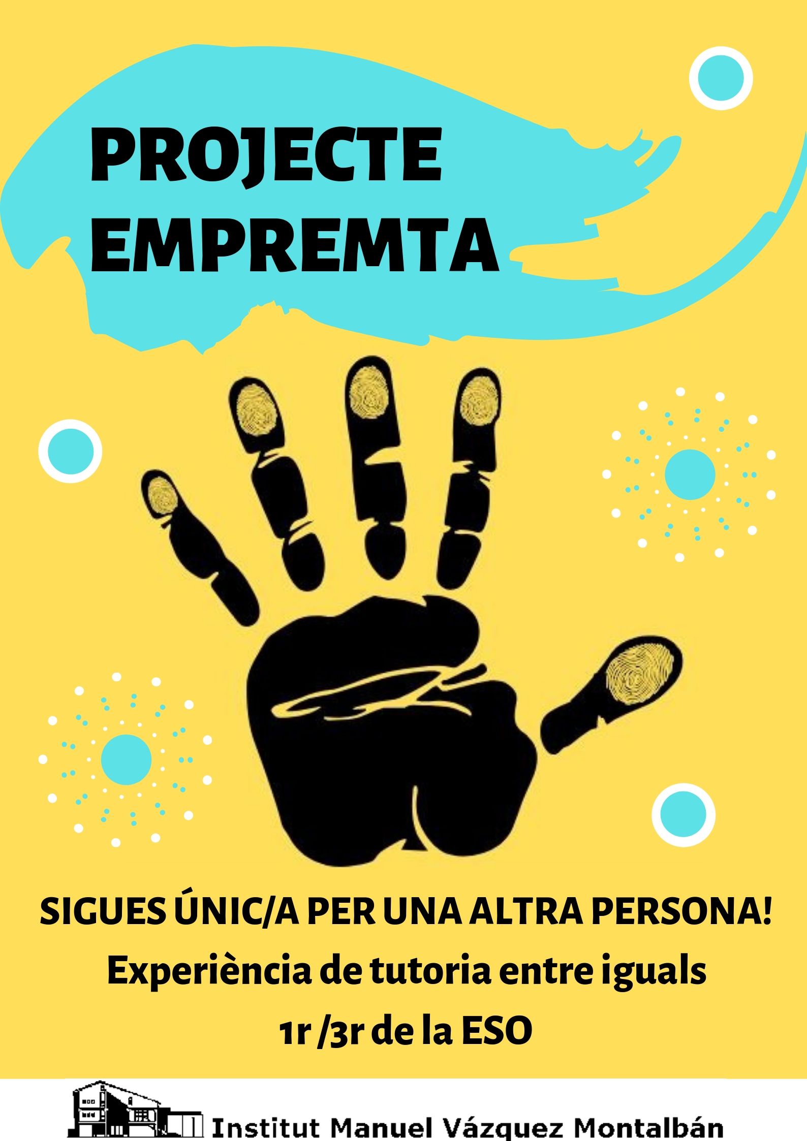 Aquest curs s’ha iniciat el Projecte Empremta, un projecte de tutoria entre iguals que busca que l’alumnat de 3r d’ESO esdevingui referent d’una parella de 1r d’ESO per tal d’afavorir la integració del nou alumnat al centre, una millor adaptació a la nova realitat i, a més a més, que el tàndem pugui compartir xerrades i moments tant informals (al passadís, al pati, a la sortida…) com formals, a les diferents trobades que es faran durant el curs.