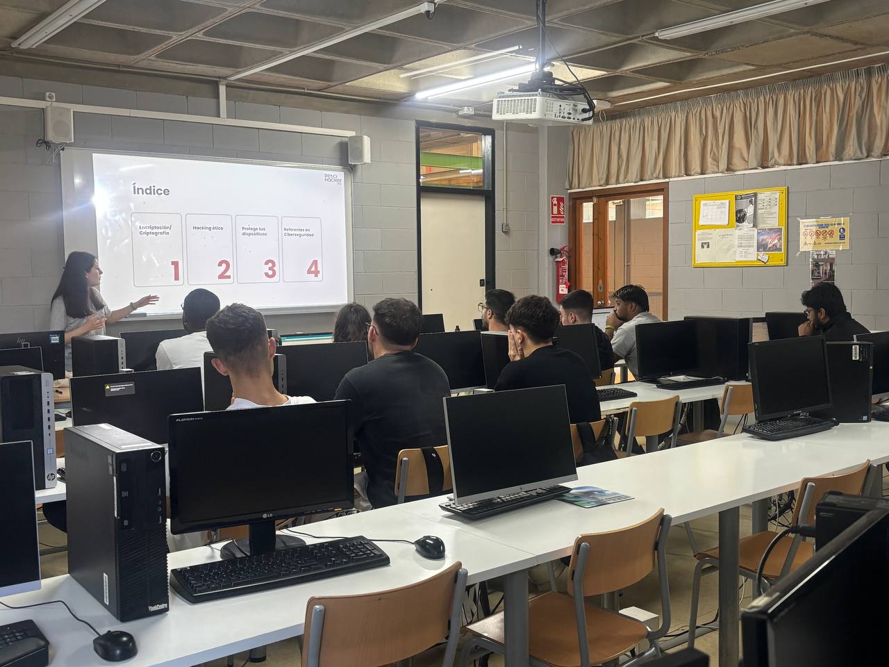 L’alumnat de grau mitjà i grau superior ha gaudit d’un taller pràctic a càrrec de la Fundación cibervoluntarios. Durant 2 hores han tingut l’oportunitat d’explorar el món de la ciberseguretat i el hacking ètic. A través de dinàmiques interactives i desafiaments pràctics, han après sobre encriptació i criptografia, protegir dispositius electrònics, identificar vulnerabilitats en internet i prevenir amenaces digitals.