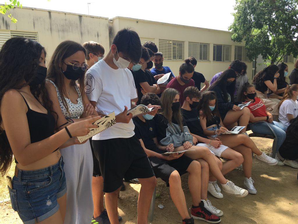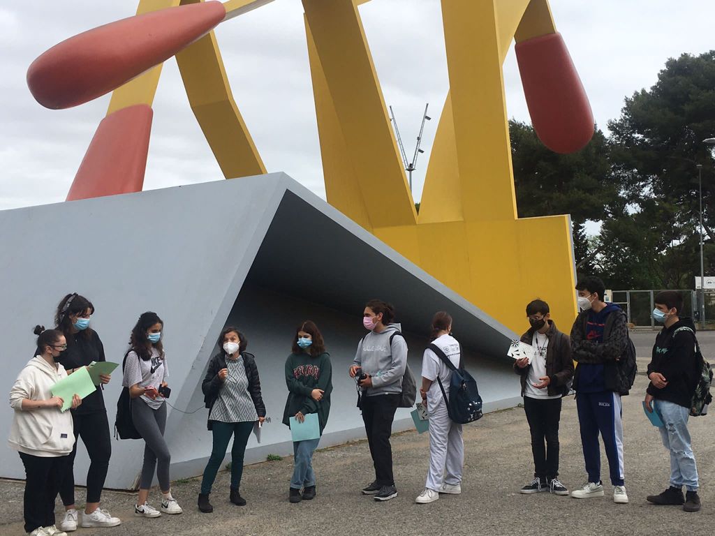 L’acte de presentació va tenir lloc el dia 26 de maig. Els alumnes vam preparar una petita ruta pels indrets on havíem fet les fotografies durant el curs i vam repartir uns exemplars de la nostra peça. Llavors, vam establir uns punts a la ruta i allà ens anàvem detenint per explicar el contingut i l’entramat del procés creatiu. Va ser molt emocionant veure el resultat. Tothom va quedar molt content de la feina que havíem fet i ens van felicitar. A més, de sorpresa, va venir un reporter de Betevé i ens va estar gravant. Us compartim el fragment del programa emès on vam sortir.