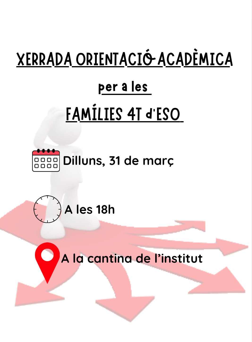 Per tal d’acompanyar-vos en aquesta decisió, hem organitzat una xerrada d’orientació acadèmica adreçada a les famílies d’aquest alumnat, que serà impartida per Montse Vallès, orientadora del centre.