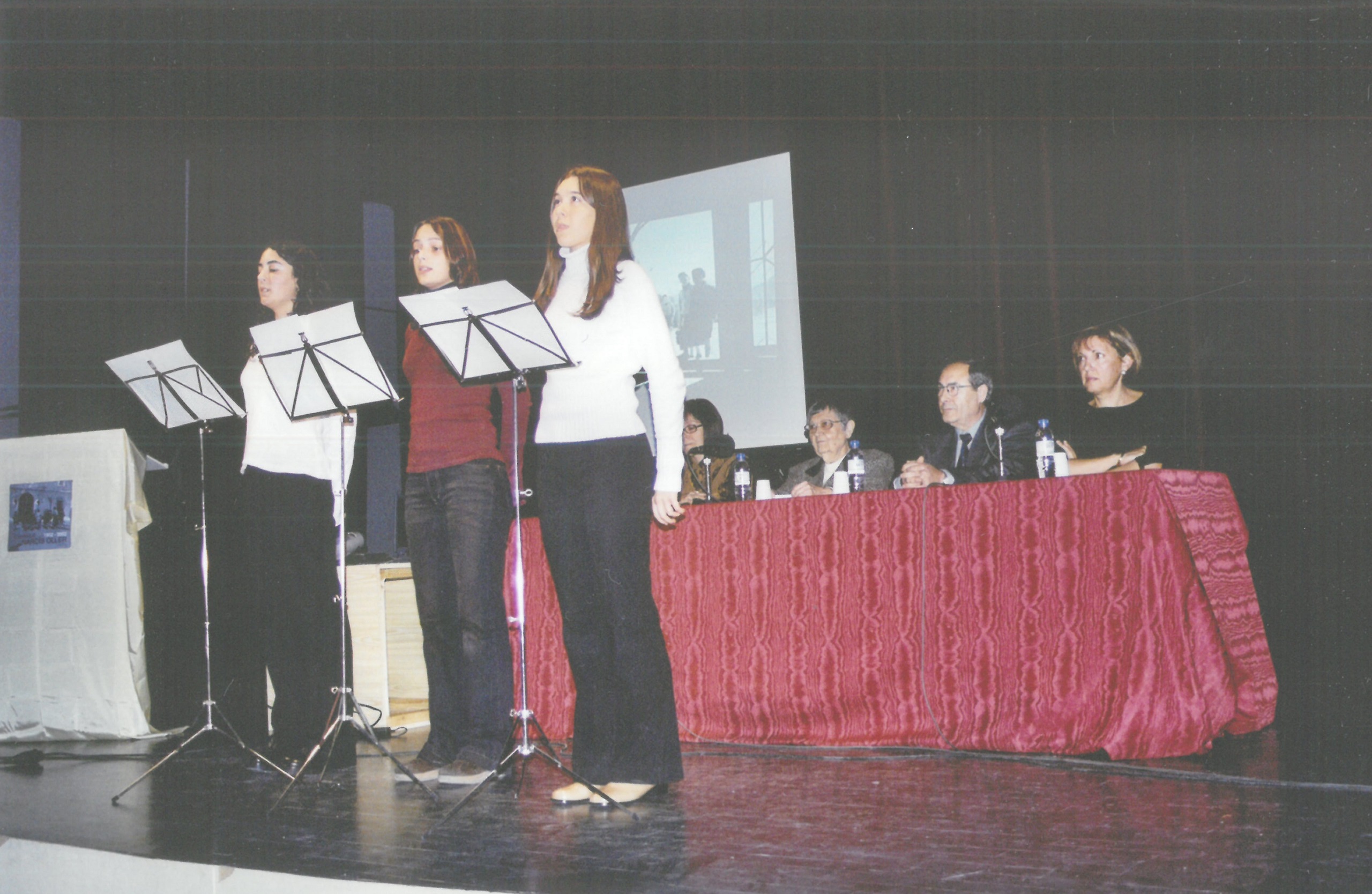 Novembre de 2002: grup d’exalumnes de l’Institut que feren diferents xerrades dins dels actes de celebració del 50è aniversari, ja al nou edifici. A la paret de darrere es pot veure el retaule al·legòric a les diferents disciplines que s’imparteixen al centre, realitzat per Mn. Josep M. Torrell, professor de religió.