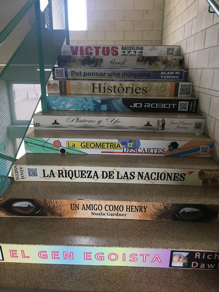 Ahir, 31 de gener, es va dur a terme un nou projecte al centre. La proposta ha estat transformar algunes de les escales de l’Institut en lloms de llibres relacionats amb les diferents matèries que es treballen al centre.