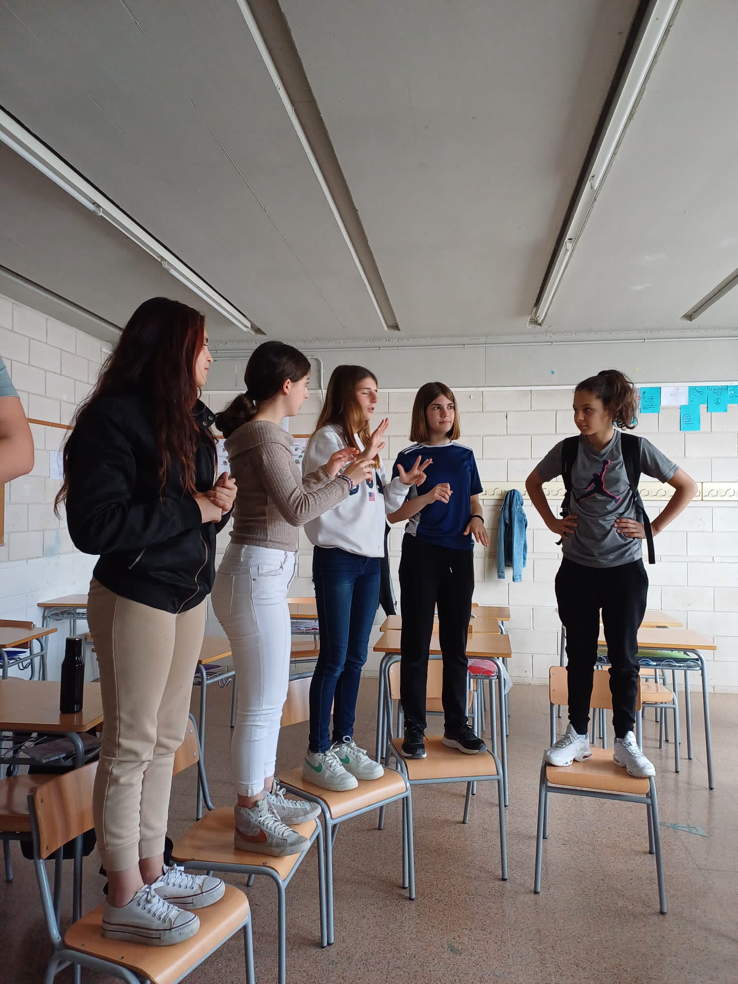 Què et ve al cap quan sents la paraula «sexualitat»? No hi ha paraules que estiguin bé o malament. Expressa’t. En un ambient molt atent i cuidat, la Paula, la Irene, la Daniela i la Gianella, de 2n d’Integració Social, obren un cercle de diàleg sobre el tema de la sexualitat amb les alumnes de 2n ESO de l’optativa de mediació.