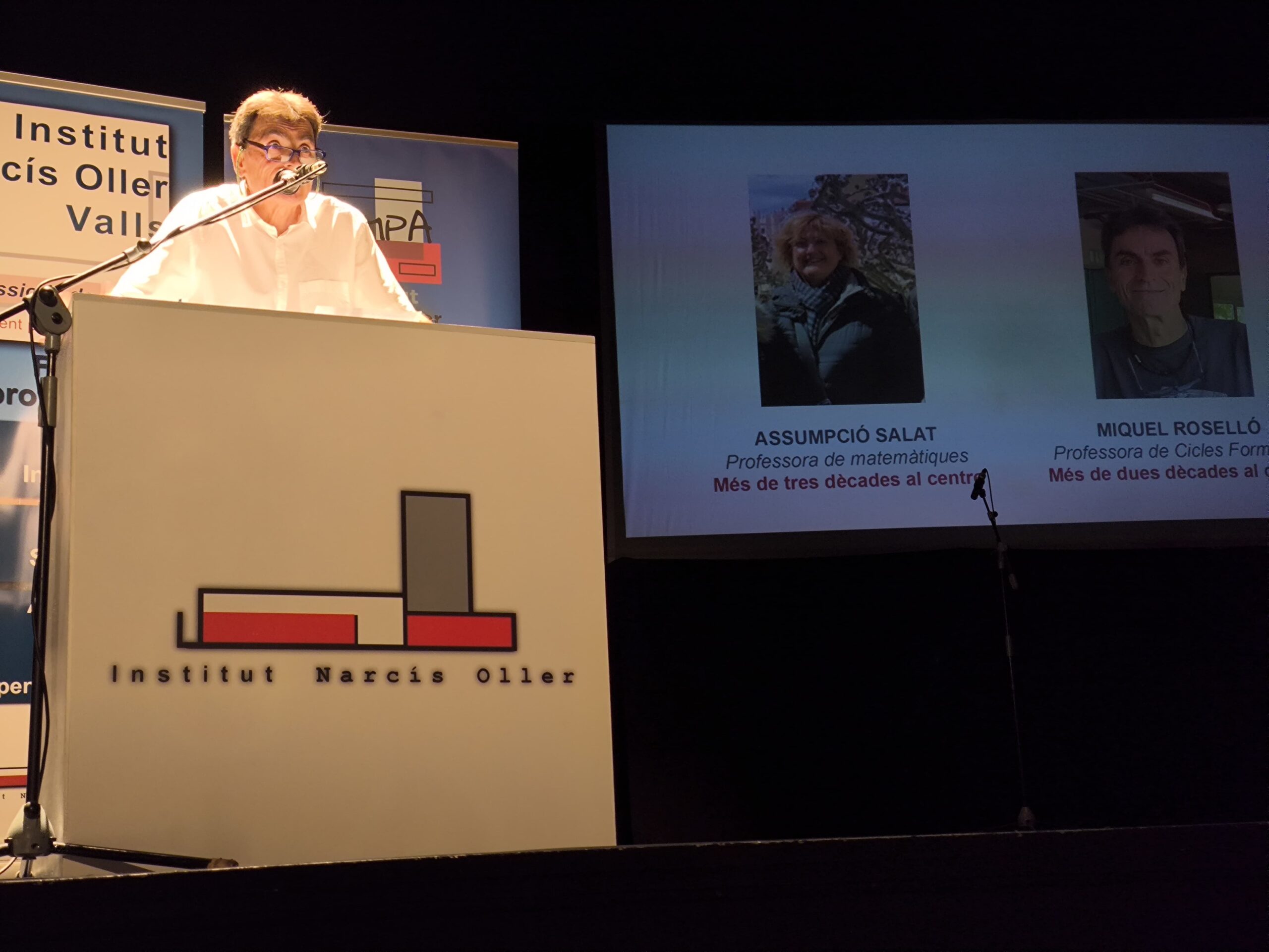 Un dels moments més sentits va ser el parlament de dos professors recentment jubilats, figures molt estimades al centre: Assumpció Salat, professora de matemàtiques durant més de tres dècades, i Miquel Roselló, professor de cicles formatius amb una trajectòria de més de vint anys.
