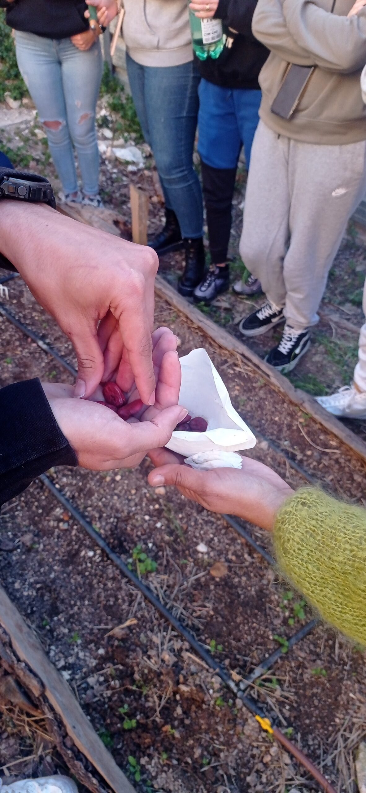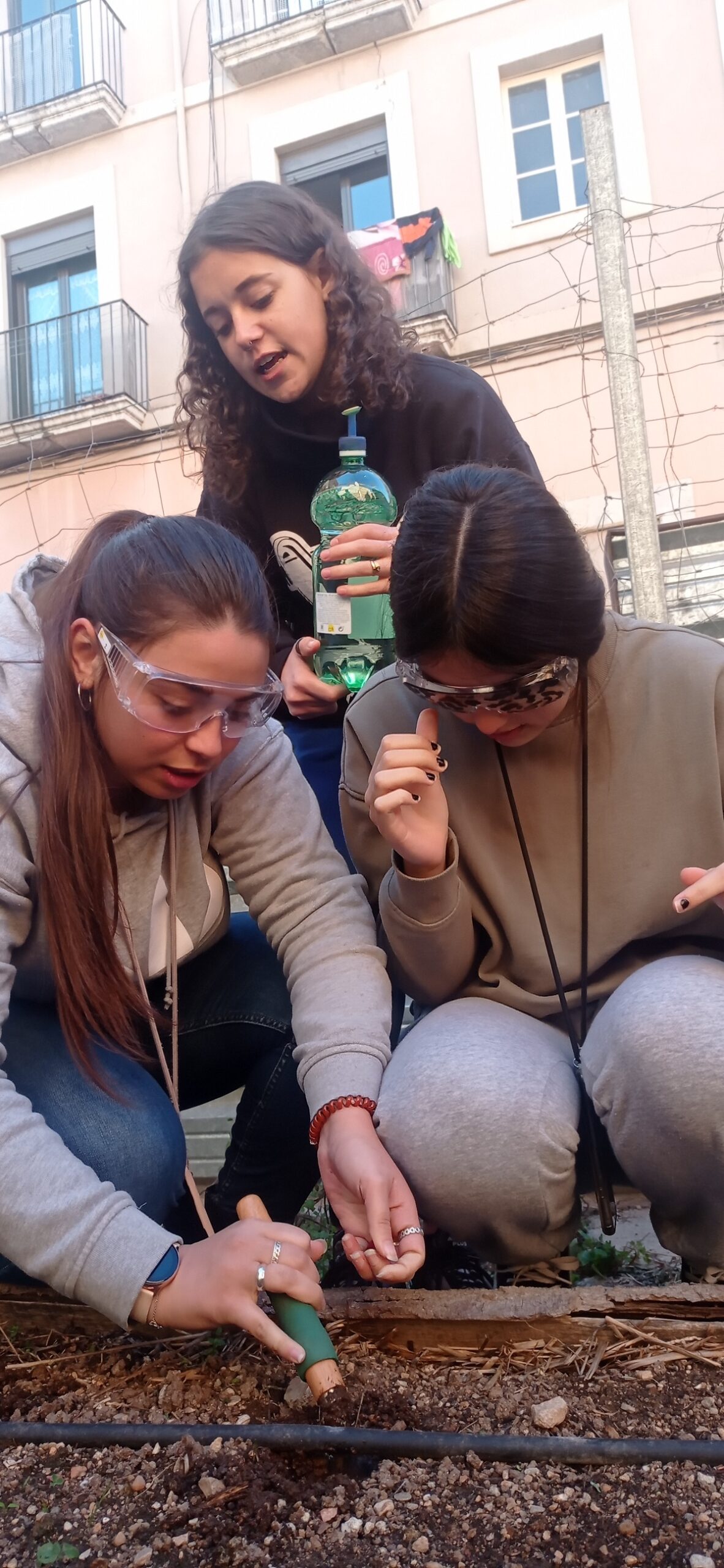 Tot seguit es va anar a l’Hort dels 4 Cantons, on, gràcies a Pere Vidal i la resta de persones que gestionen aquest espai, es va implementar la part pràctica de la formació. Es van realitzar diverses dinàmiques en petits grups d’equips interdisciplinars (TAPSD i TIS), on part de l’alumnat feia de persones amb diversitats funcionals (problemes de vista, fent servir diferents ulleres per les diferents afeccions, problemes de mobilitat, etc. ) i altres feien de Terapeutes hortícoles dirigint i acompanyant les persones usuàries, i es van plantar diferents llavors que amb l’arribada de la primavera creixeran i donaran fruit.