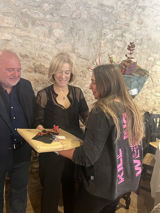 I el dia 19 de desembre, en el dinar de final de trimestre celebrat en un restaurant de la comarca, es va fer la celebració i el lliurament de regals als nous jubilats.