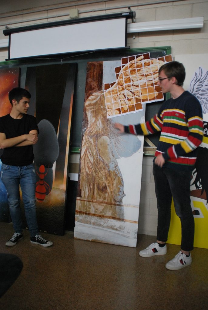 Avui a classe de dibuix artístic de segon de batxillerat hem pogut compartir una mica d’art, pensament i mitologia amb els alumnes de l’optativa de psicologia de segon de batxillerat i l’artista Arnau Casanoves. Casanoves ha exposat aquest hivern al Museu de Valls una sèrie de portes i finestres pintades titulada “En cinc minuts torno”