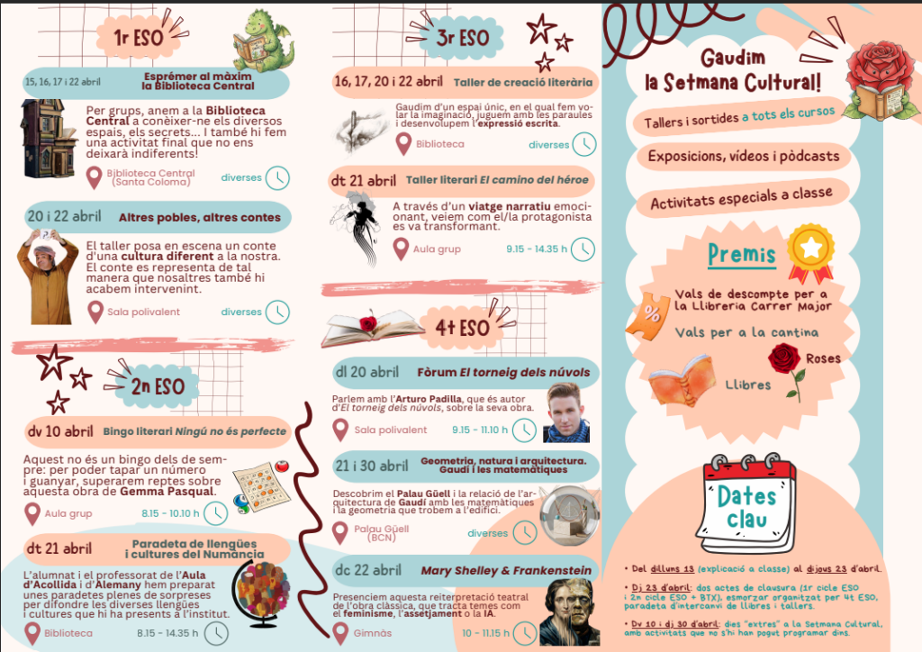 Per conèixer en detall totes les activitats programades, podeu consultar el tríptic informatiu, que recull la gran varietat de propostes que el nostre institut ha preparat amb molta il·lusió.