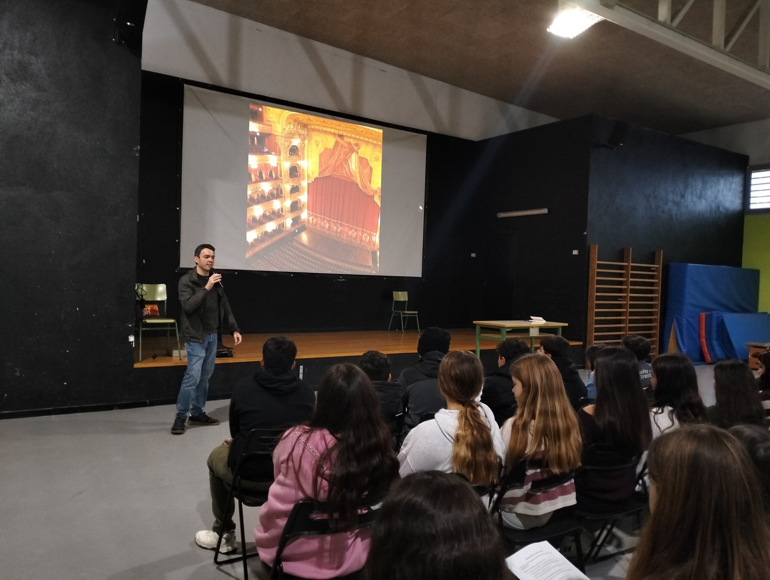 Avui, l’escriptor i actor Rubèn Montañá, autor de Súper B!, ha vingut a fer-nos una xerrada als grups de primer de l’ESO. Ens ha parlat del seu llibre, una obra teatral, que hem tingut l’oportunitat de llegir durant el primer trimestre. A més, també ens ha fet cinc cèntims d’alguns aspectes del teatre i recomanacions per si volem representar l’obra a classe.