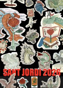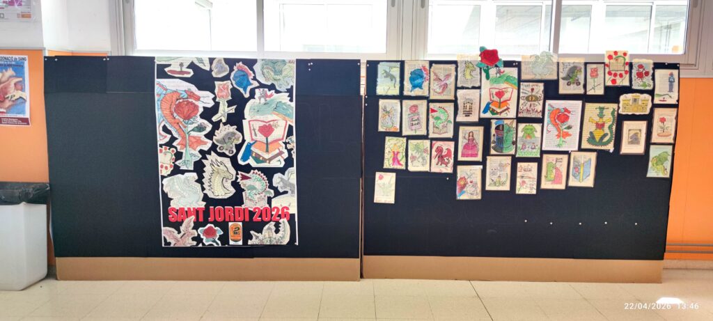 El cartell de Sant Jordi d’aquest 2026 destaca per ser una obra col·lectiva que reflecteix el talent i la creativitat de l’alumnat de 1r d’ESO en la matèria d’Educació Visual i Plàstica. A partir de diferents propostes individuals, s’ha construït un disseny final que integra diverses mirades artístiques en una sola composició.
