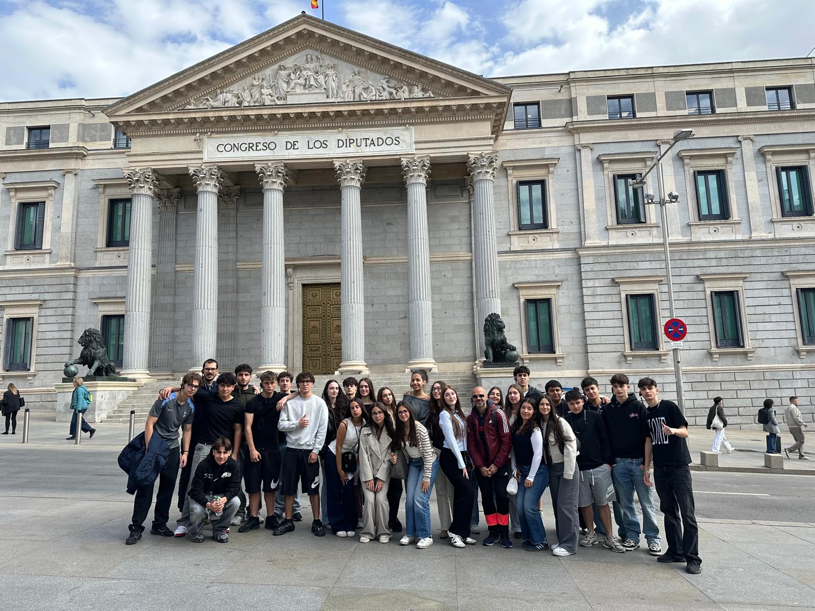 Al matí, el grup ha visitat el Congrés dels Diputats, una de les institucions més importants de l’Estat. Durant la visita, han pogut conèixer de prop el funcionament del sistema parlamentari, així com la història i el valor simbòlic d’aquest edifici emblemàtic.