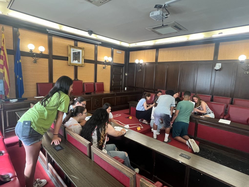 L’endemà, dijous 12 de juny, van anar a l’Ajuntament de Santa Coloma de Gramenet per trobar-se amb els organitzadors dels escape rooms del projecte PompeuLab. Allà van presentar el seu propi escape room, elaborat durant les sessions de classe, i van participar en una emocionant activitat detectivesca a la sala de plens!