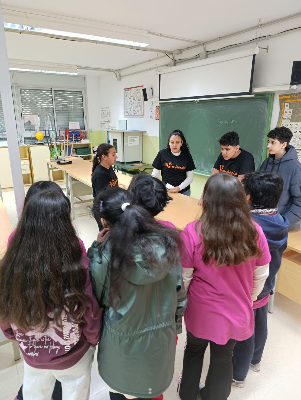 A l’Institut Numància, alumnes voluntaris de 1r i 2n d’ESO han fet de guies i han explicat de primera mà com funciona el nostre centre de secundària. Durant la visita guiada, els alumnes han pogut conèixer diversos espais de l’institut, com les aules de tecnologia, els laboratoris de ciències, la biblioteca i el gimnàs.
