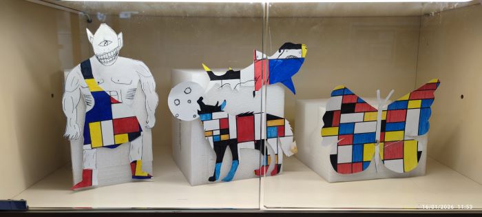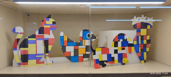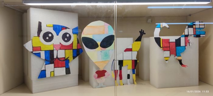 Durant el projecte, l’alumnat ha descobert dues maneres molt diferents d’entendre el color i les formes, experimentant amb composicions geomètriques, línies rectes i colors primaris, així com amb formes més lliures, expressives i simbòliques. Les obres exposades són reinterpretacions personals que mostren el procés creatiu i l’esforç fet a l’aula.