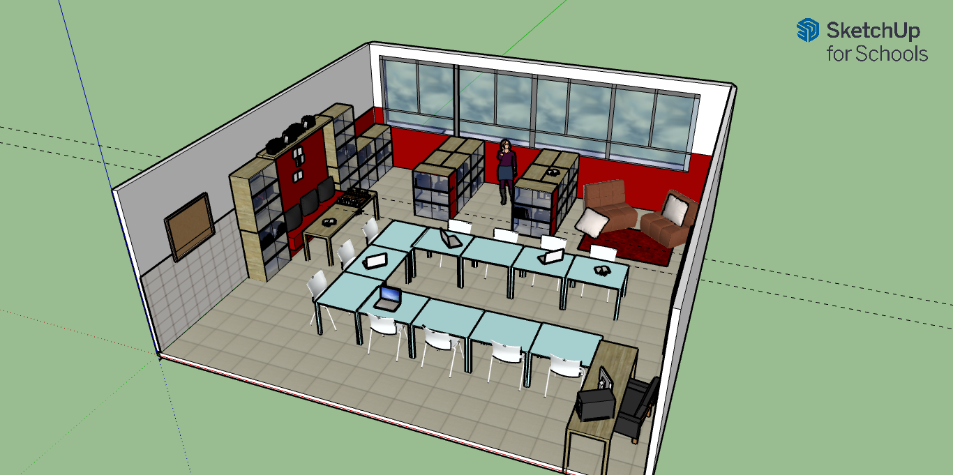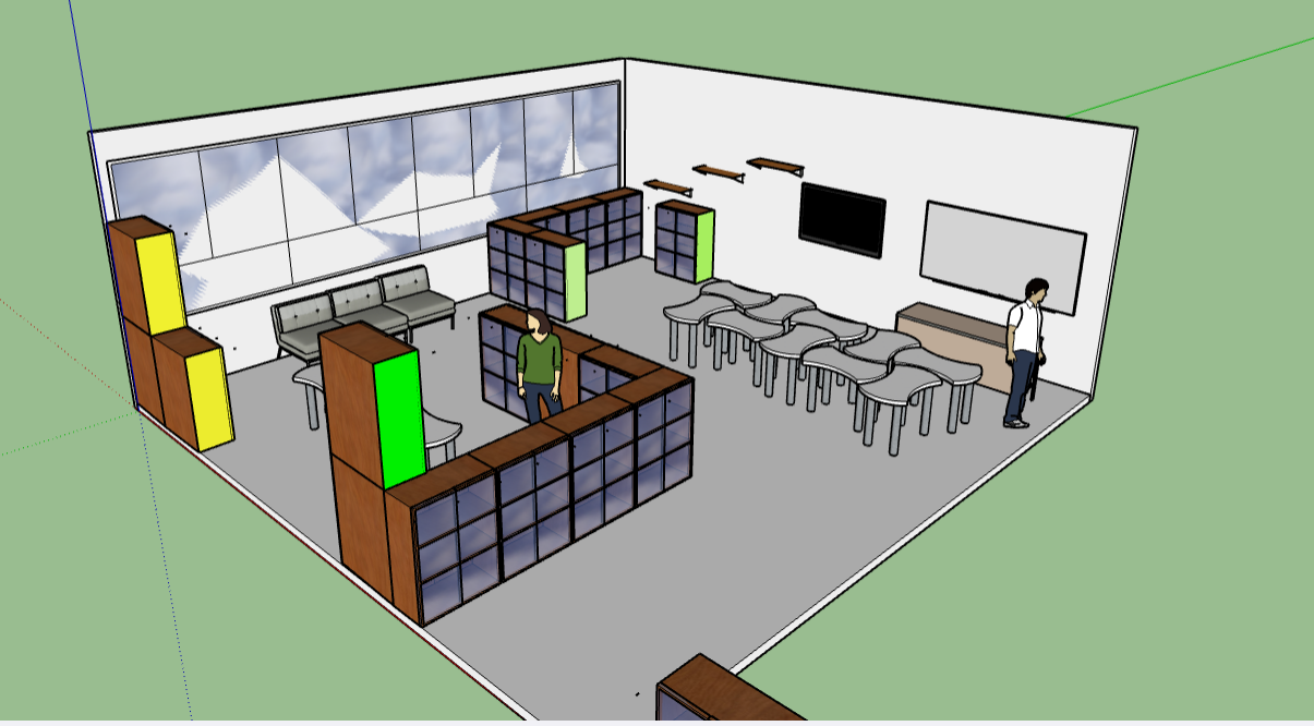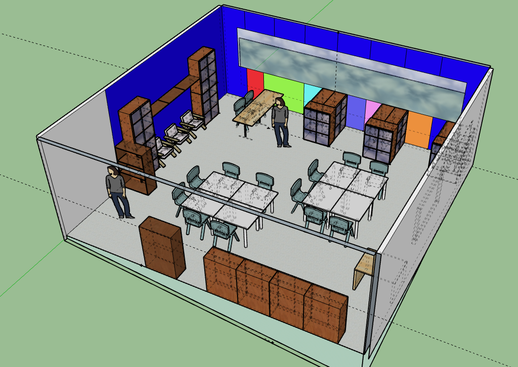 Amb l’assessorament del professorat i aplicant criteris estètics i funcionals, els estudiants han reorganitzat virtualment el mobiliari, amb el programa sketch up, i han proposat una nova paleta de colors diferenciadors per a cada zona. L’objectiu ha estat crear ambients amb identitats pròpies però harmònics entre ells, afavorint així la convivència de les dues funcions en un mateix espai.