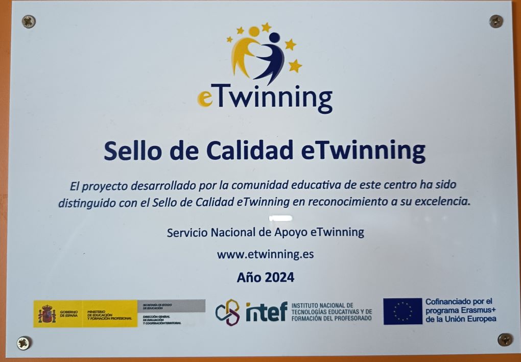 Remenant amb més calma, però, vam acabar trobant una petita placa de metacrilat que ho explicava tot… El Servei Nacional de Suport eTwinning ens volia felicitar per haver obtingut el Segell Nacional de Qualitat pel projecte Literature without Frontiers (2023-24)