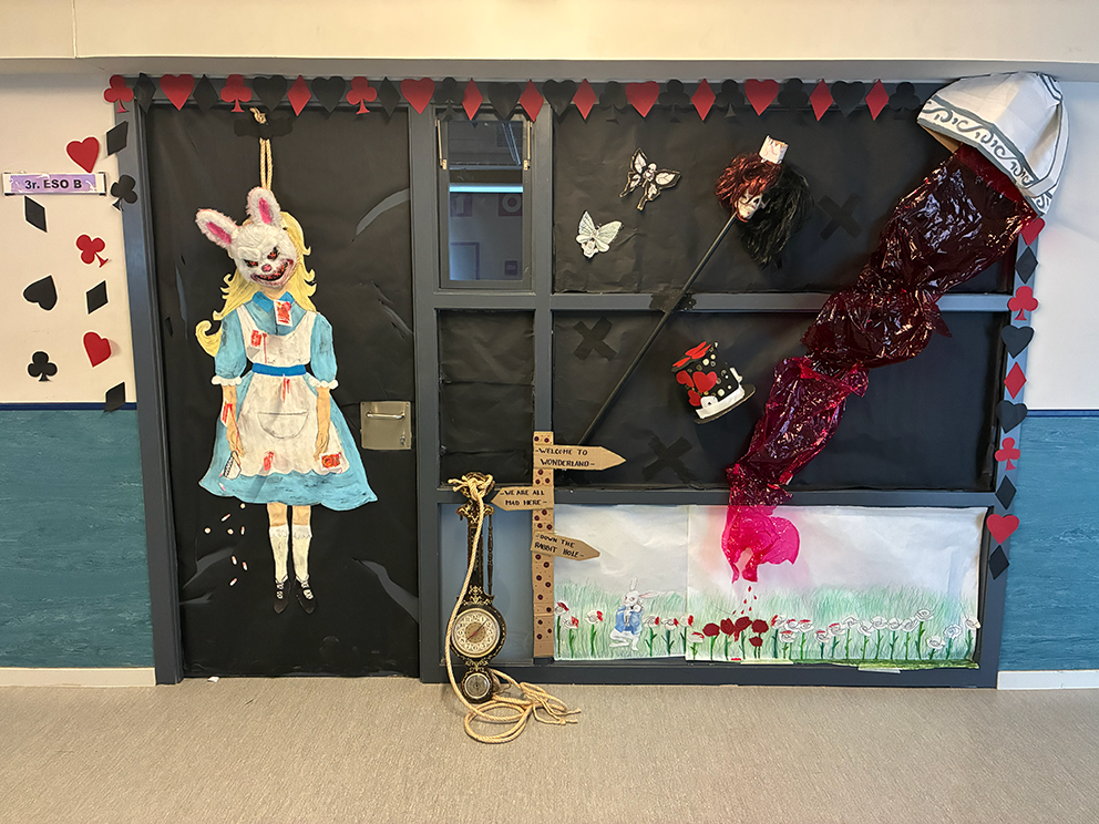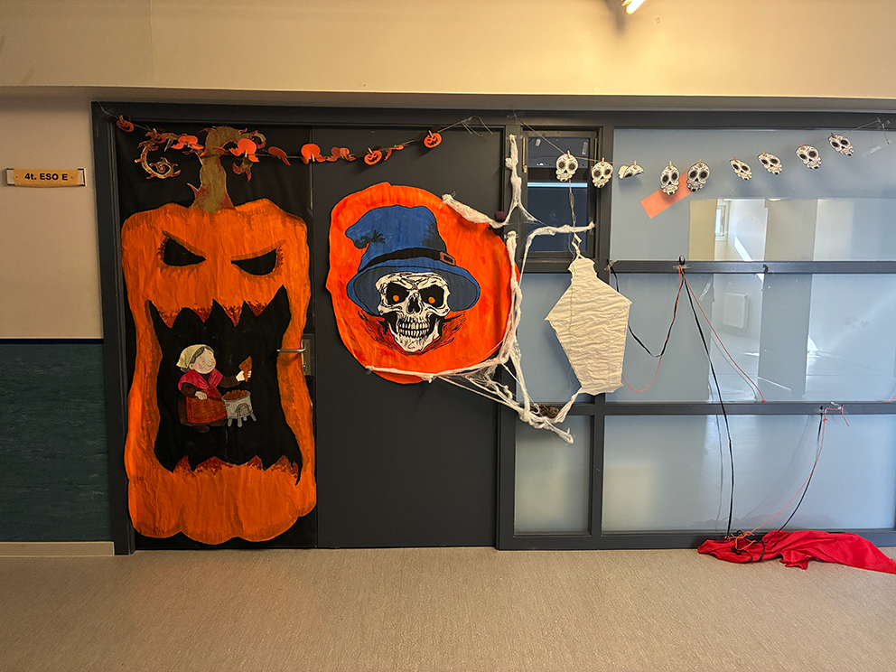 Last month, our students decorated the classroom doors to celebrate La Castanyada and Halloween. Once again, they amazed us with their originality and creativity. This year’s winners were 1A, 2A, 3B, 4E, and 2nd year of Baccalaureate B. Here’s what they said about their decorations: