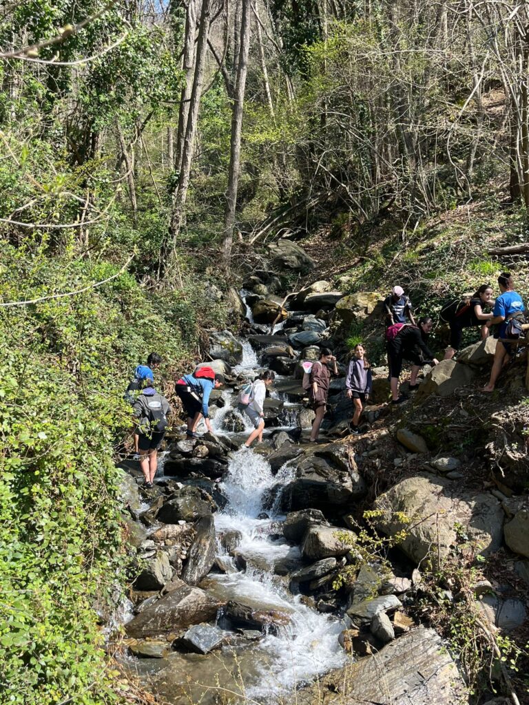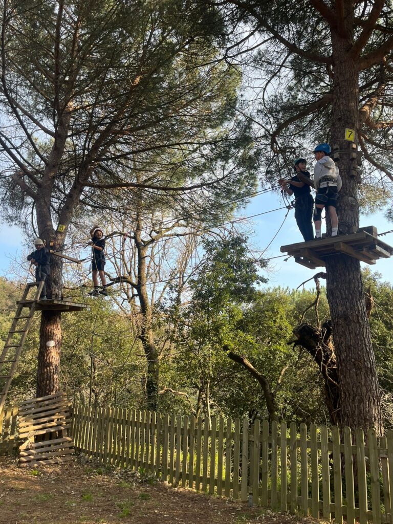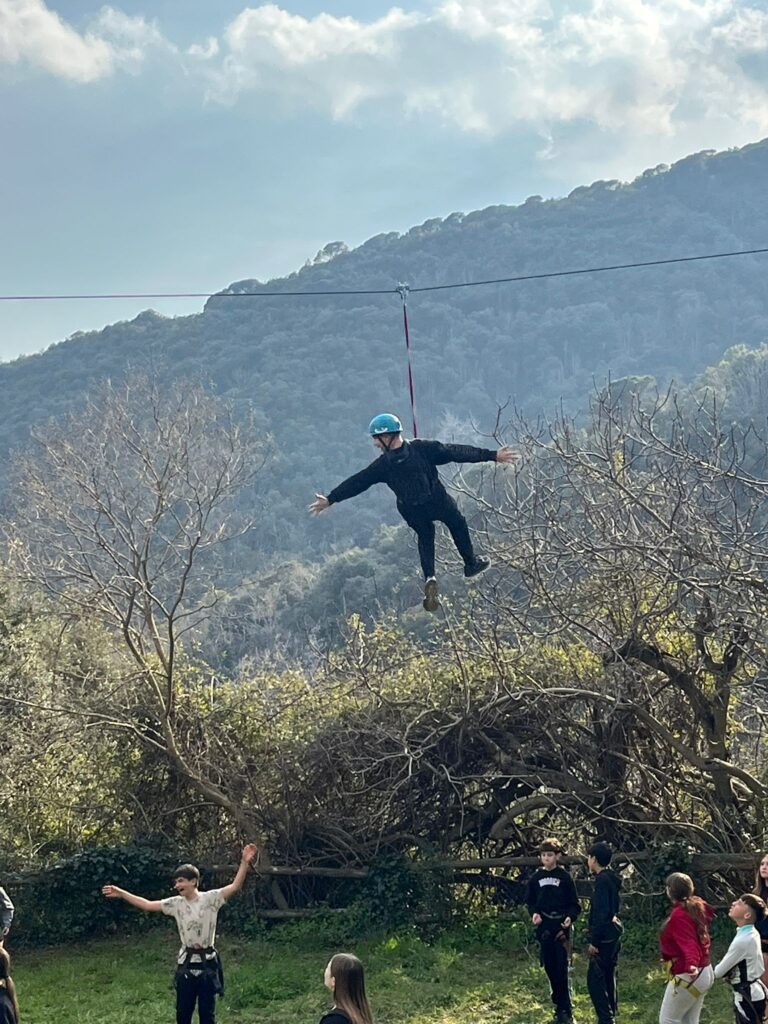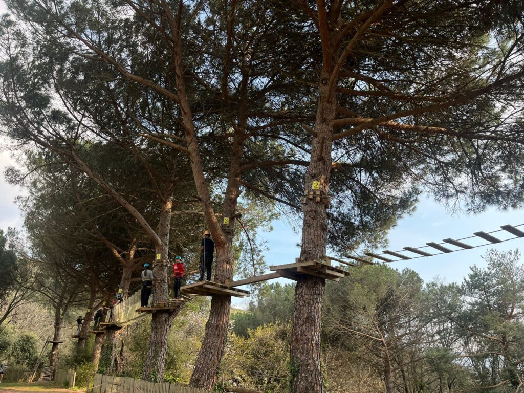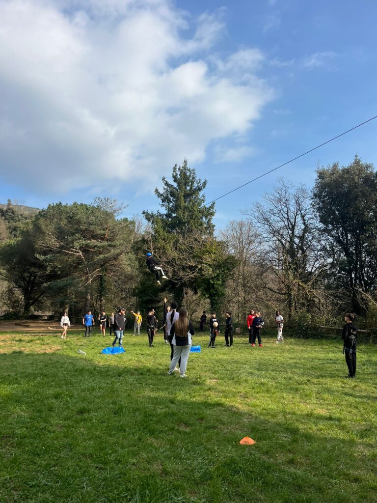 L’alumnat de 1r d’ESO avui s’ha dividit en diferents grups per anar fent rotació amb les diferents activitats entre les que hi havia remuntada pel riu, jocs tipus gimcana amb reptes pels voltants de l’entorn natural de la casa, tirolina i bosc vertical. Tot un grapat d’experiències vivencials dins la natura.