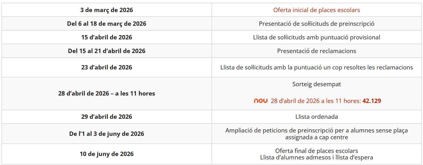 29/04 – Novetats: Publicació llistat ordenat de la preinscripció amb número desempat 42129.