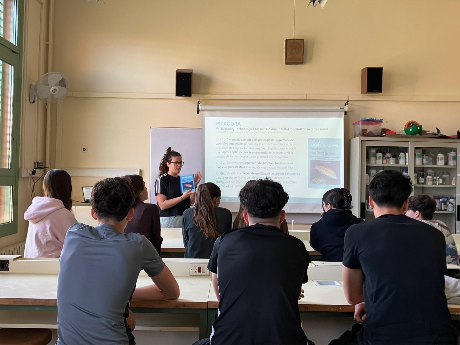 Avui ens ha visitat la científica 👩🔬 de l’Institut de Ciències del Mar (ICM), la Paula Catasus. La Paula ens ha presentat el projecte PITACORA 🌊 on participarem alumnes de 3r d’ESO de la comissió PROBLUE 💙. Aquesta proposta és un projecte de ciència ciutadana 🔬 de l’ICM que consisteix en l’observació i identificació de fitoplàncton marí 🐚 de la costa barcelonina 🏖️.El nostre centre desenvolupa aquesta activitat en el marc del Programa europeu PROBLUE 🇪🇺 on hem estat seleccionats per participar-hi 🎉