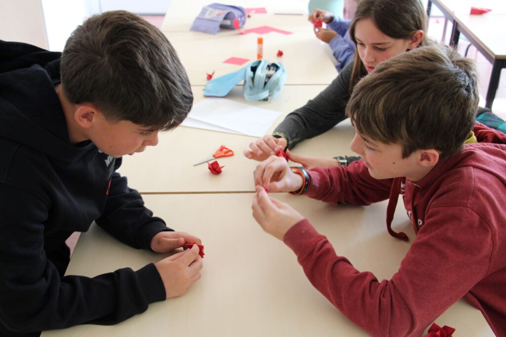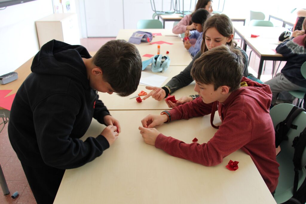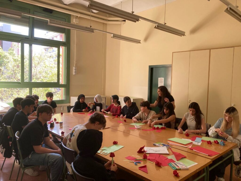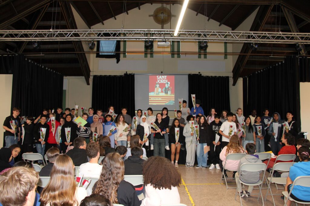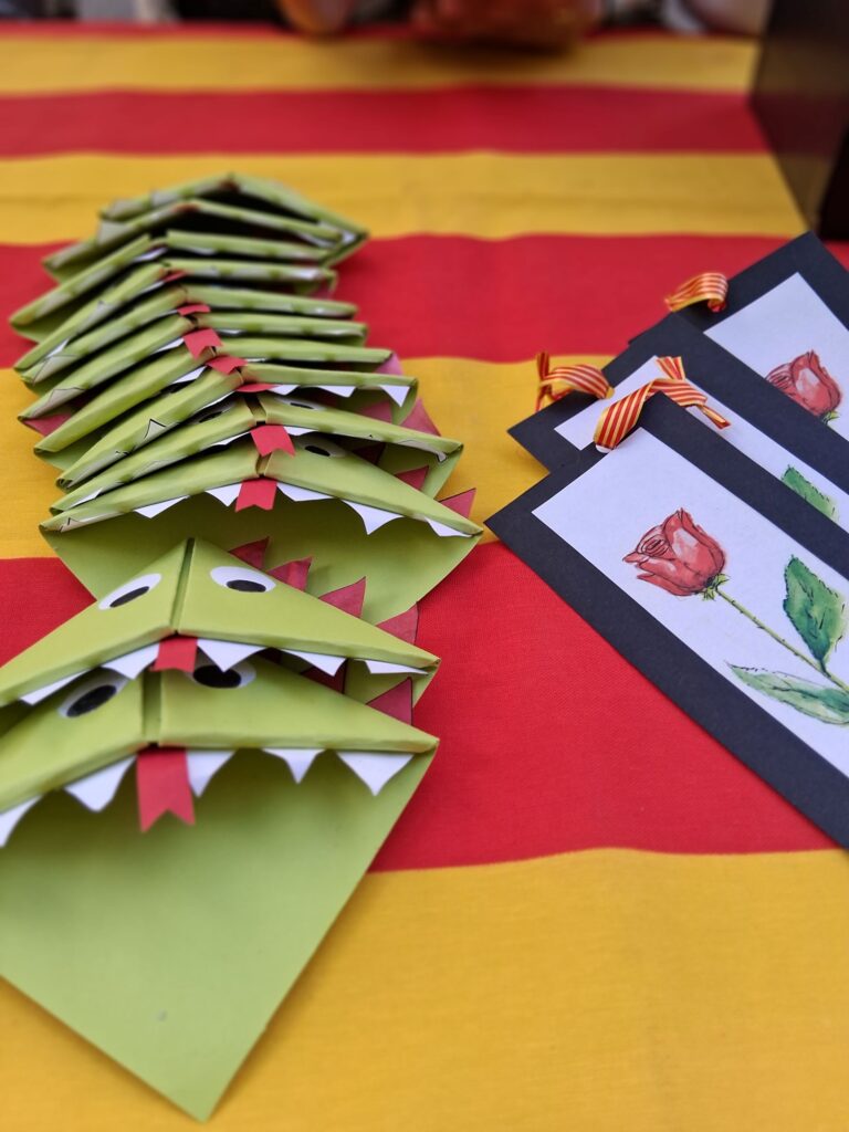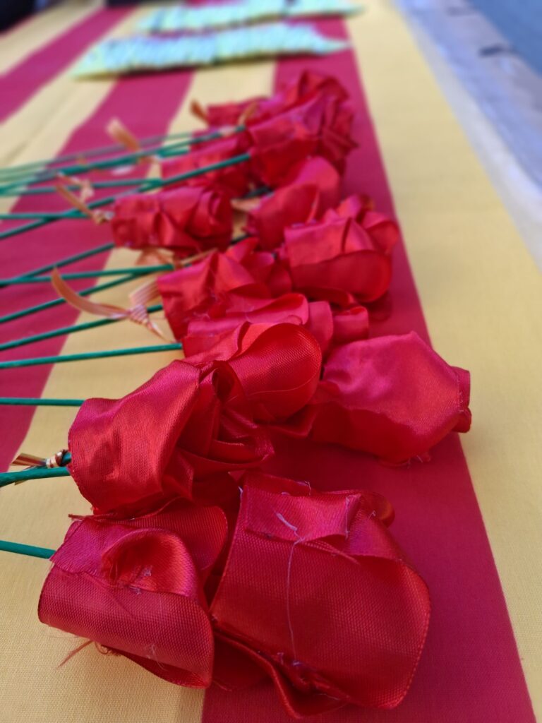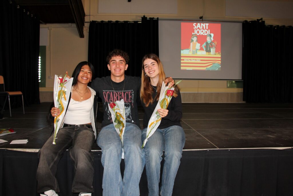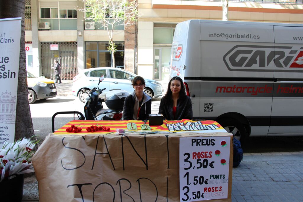 L’alumnat de 1r de batxillerat va vendre roses, roses de paper i punts de llibre per celebrar Sant Jordi al carrer Sicília 178!