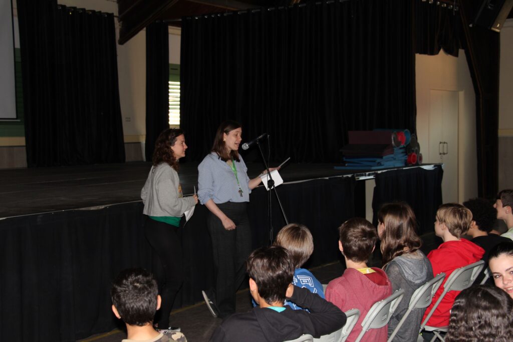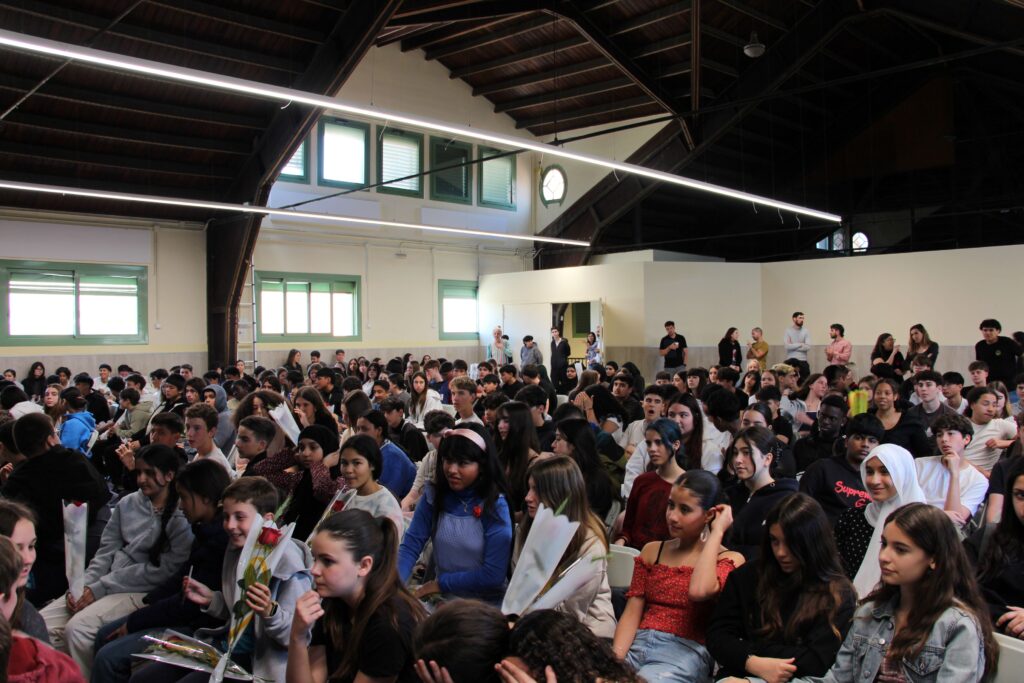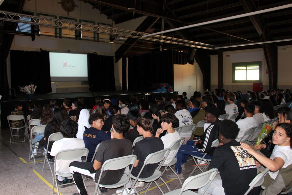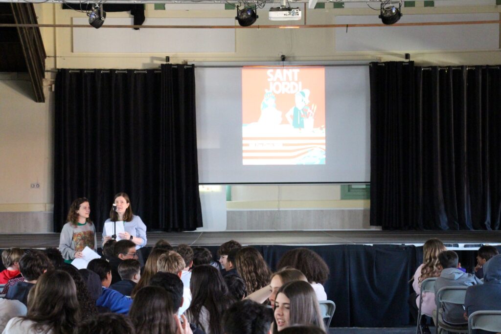 Després del pati, vam omplir la sala d’actes per al CERTAMEN LITERARI DE SANT JORDI