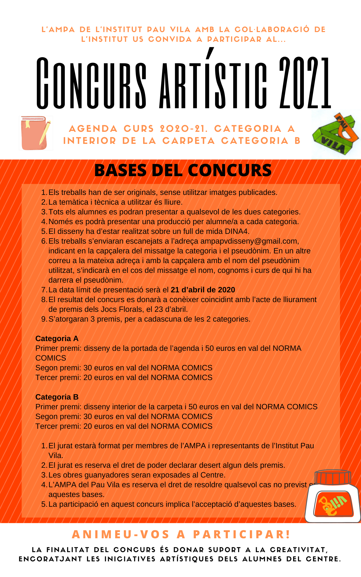 Ja podeu participar en el Concurs artístic 2021 que organitza l’AMPA del Pau Vila.