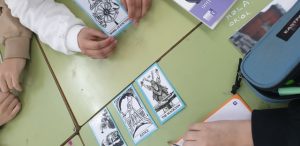 A anglès de tercer d’ESO estem treballant el futur i hem muntat una activitat de ‘Lectura del Tarot’ on els alumnes posen en pràctica aquest temps verbal fent prediccions inventades i divertides utilitzant unes cartes del tarot fetes per ells.