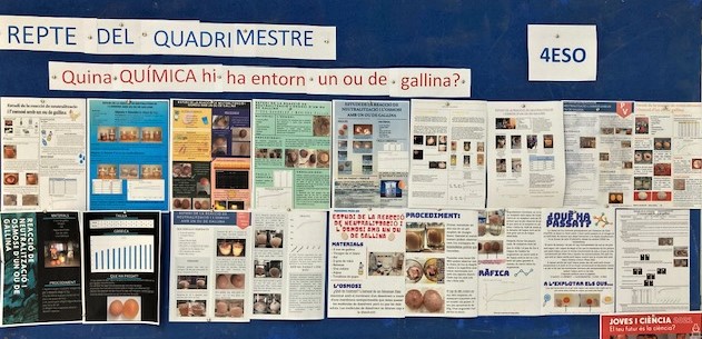Aquest quadrimestre hem treballat molta Química a 4t d’ESO. Un bon exemple són aquests fantàstics pòsters que han elaborat recollint les dades experimentals i explicacions de l’estudi de l’ou de gallina. Fenòmens com l’osmosi (que també es dóna en les cèl·lules del nostre cos) i les reaccions àcid-base en han ajudat a entendre-ho millor.
