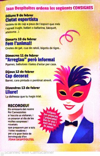 Ja tenim aquí les consignes de l’Ajuntament per disfressar-nos els dies d’aquesta setmana. Busqueu per casa, segur que trobeu material per poder fer content en Carnestoltes. Gaudim d’aquests dies de festa i ignorem el fred d’aquest febrer particular.