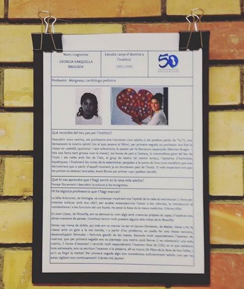 Aquests dies a les parets del centre hi podreu trobar els ex-alumnes que parlen d’experiències i records al llarg dels 50 anys d’història del nostre institut.