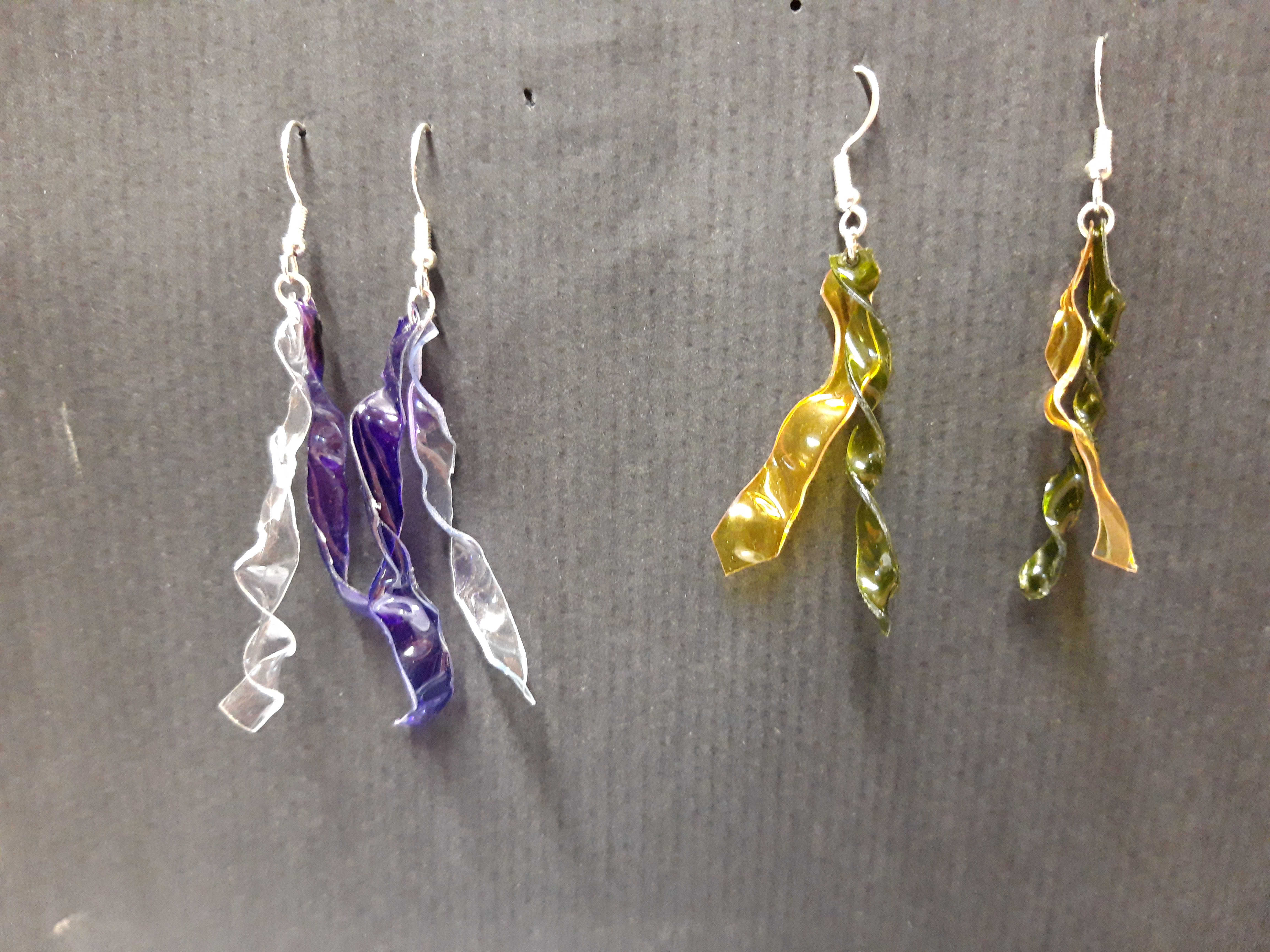 2- Arracades fetes amb plata i plàstic reciclat (producció pròpia)