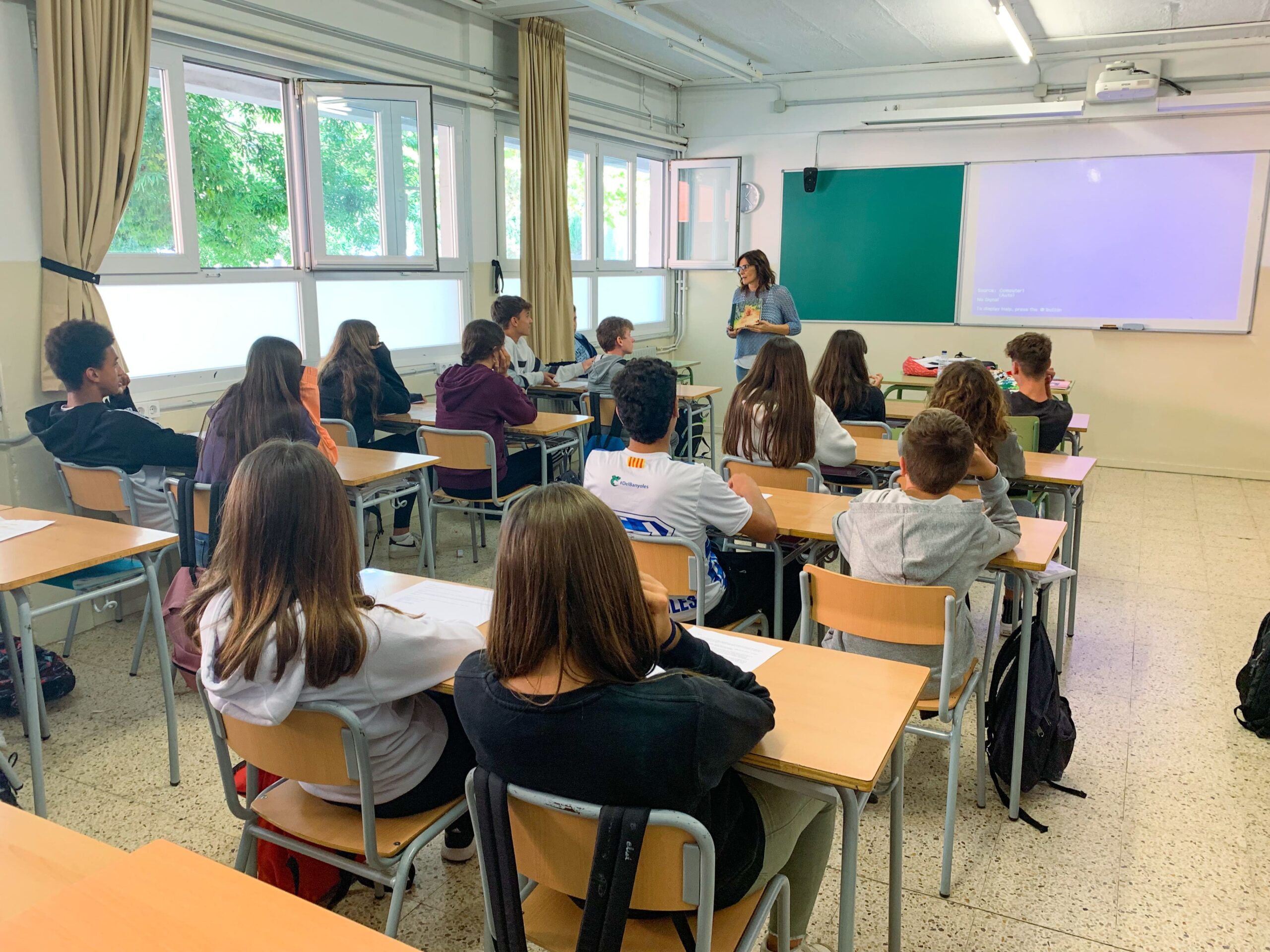 Dilluns passat va venir la Gemma Soler a presentar “El sofà de lectura” als alumnes de 3r d’ESO en el marc del Servei Comunitari. Una de les propostes que té el nostre alumnat a l’hora de realitzar aquest servei és la de fer de model de lectura als nens i nenes de primària. La proposta és molt interessant ja que sovint això comporta tornar a l’escola que els ha vist créixer per col·laborar activament en l’aprenentatge de la lectura dels nens i nenes més petits.