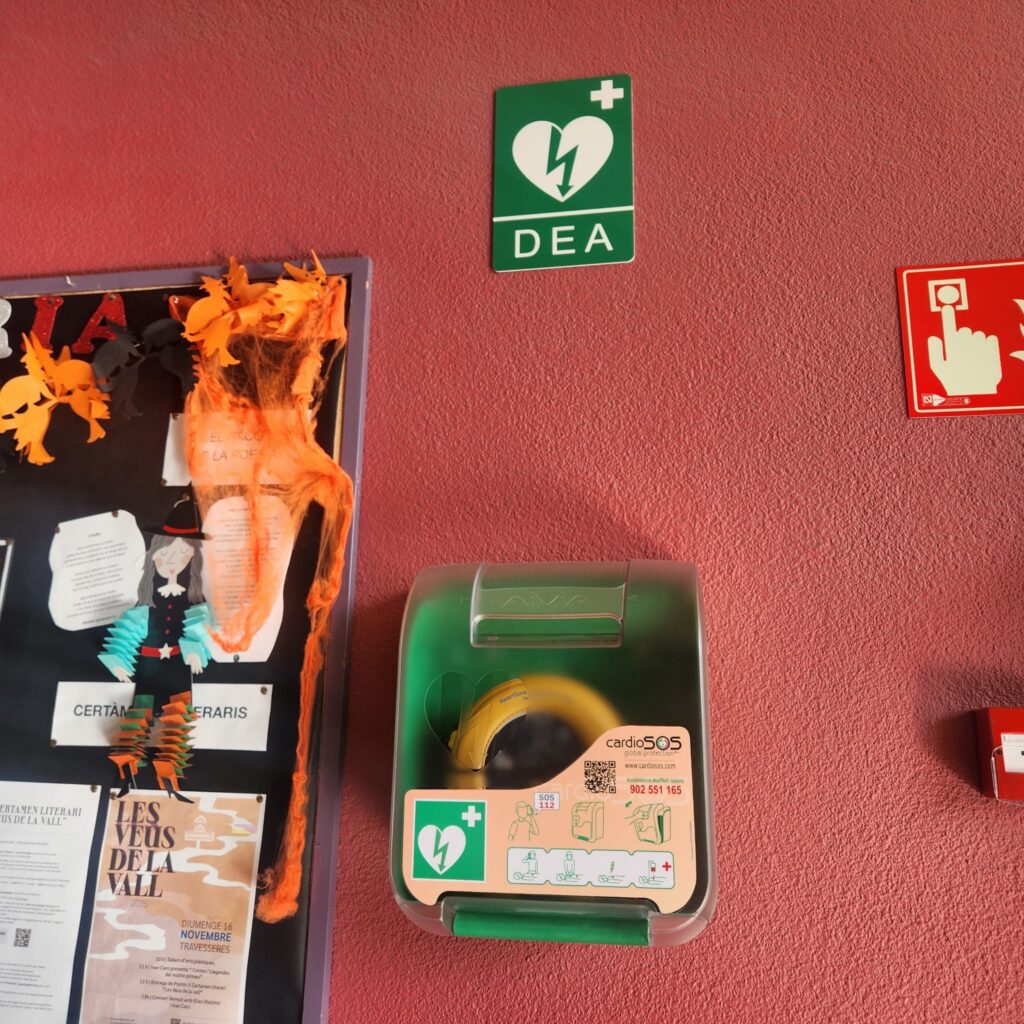 Des de fa uns dies s’ha instal·lat un DEA (Desfibril·lador Extern Automàtic) al hall del nostre centre. La instal·lació, la posada en marxa i la formació de vuit docents s’han dut a terme amb l’empresa Cardiosos Global Protection S.L., contractada pel Departament d’Ensenyament.