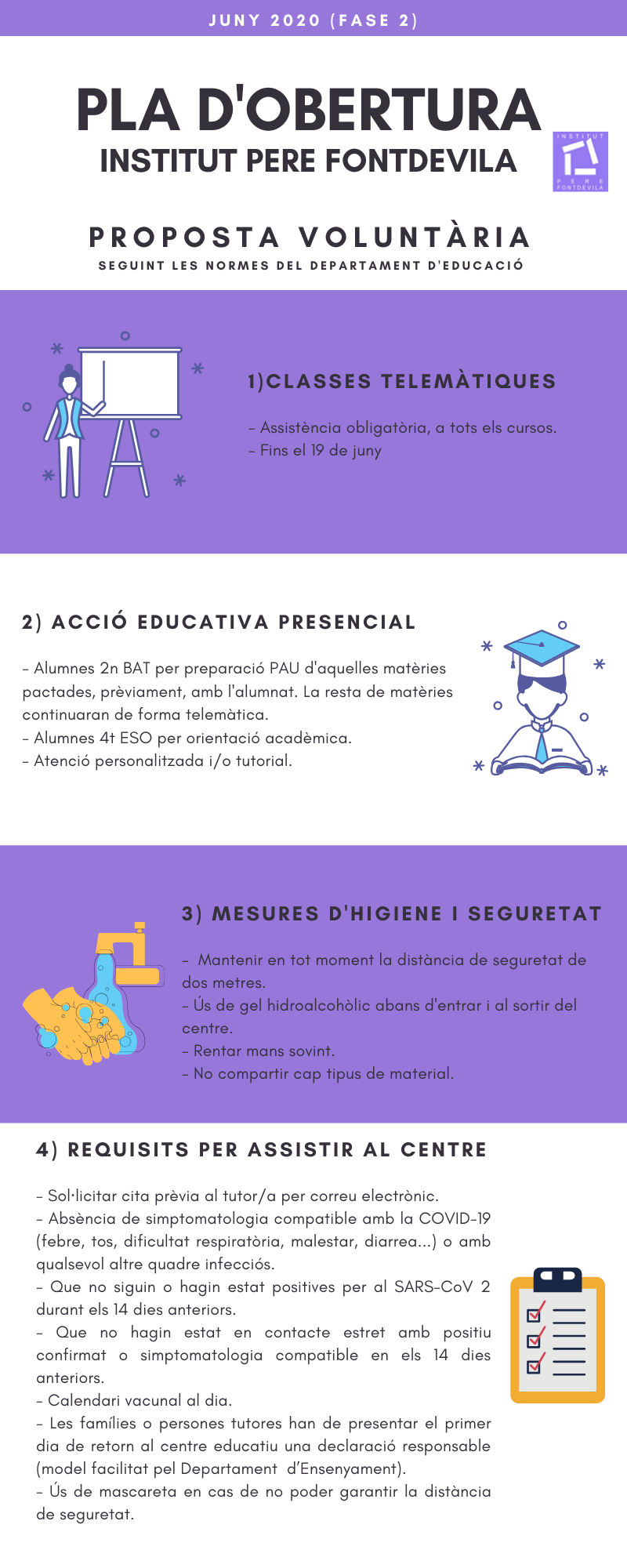 Pla d’obertura de centre (fase 2) Feu un comentari / Per admin / Divendres, 29/05/2020 / _Portada Coord_Riscos Direcció Institut Text complet del Pla d’obertura de centre en fase 2