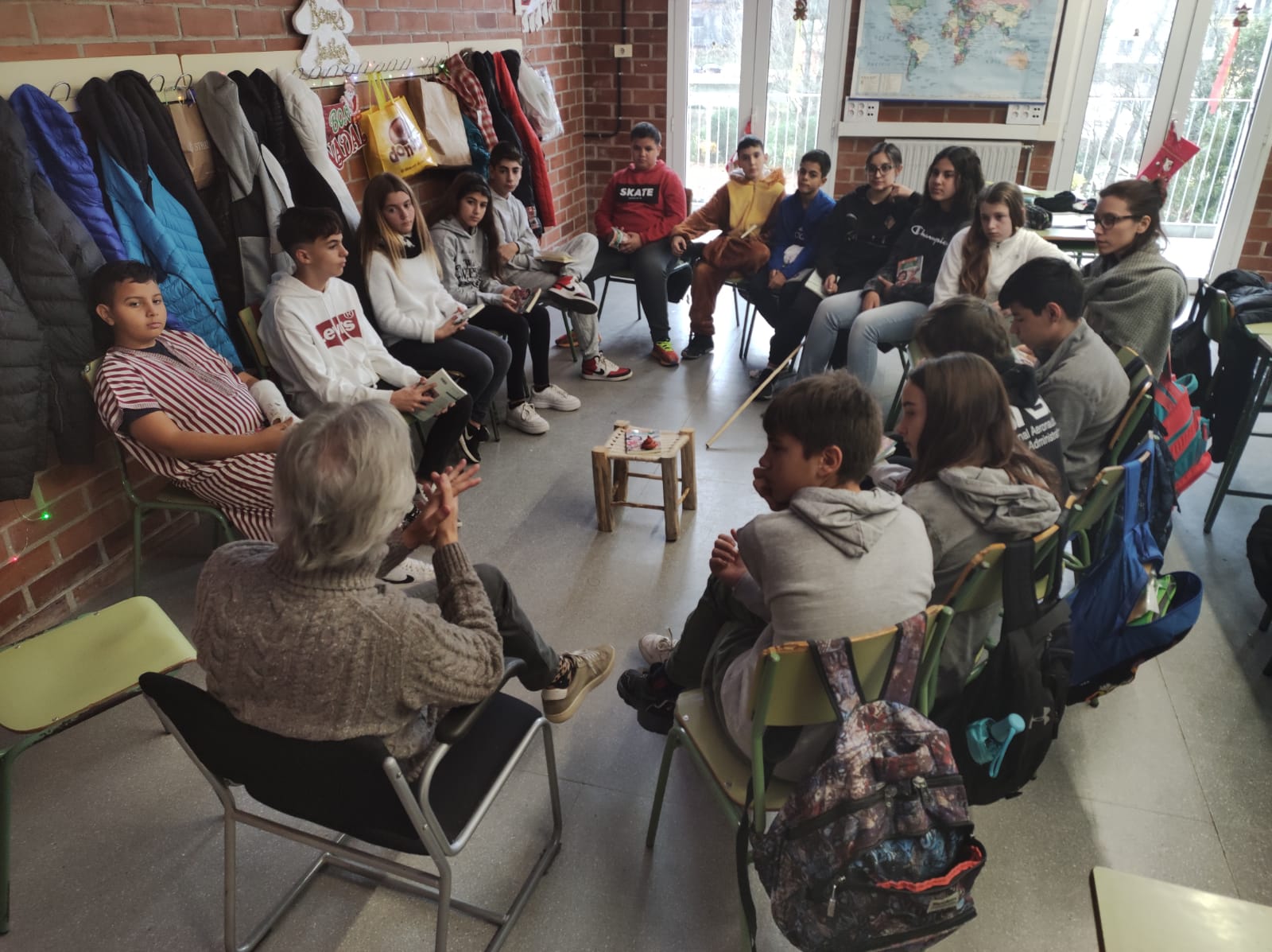 Els alumnes de 1r d’ESO han llegit aquest trimestre l’obra de teatre de Xavier González-Costa: “Una caca de pessebre”, premi de teatre infantil “Xaro Vidal” de la Ciutat de Carcaixent del 2018. Els alumnes han pogut gaudir també, com a cloenda de la lectura, d’una conversa amb l’autor. Aquest els ha contestat totes les preguntes que havia suscitat la lectura i el mateix autor: sobre la seva vida i la seva obra en general, sobre la motivació per iniciar l’escriptura, sobre els personatges, els temes… L’hora que Xavier González va dedicar a cada classe de 1r es va fer curta i tots els alumnes li van expressar el seu desig que l’obra tingués continuació ja que s’ho van passar molt bé i van riure molt fent una lectura dramatitzada a l’aula. Esperem que aquest desig es faci realitat!