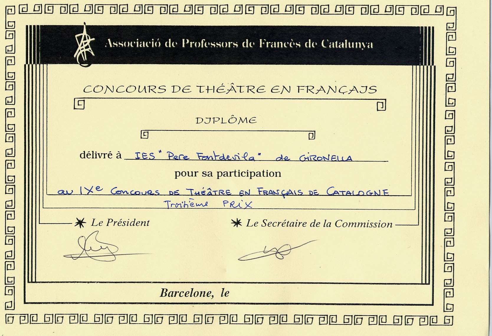Alumnes del CV 4t ESO de Francès han guanyat el 3r premi del Concours de Théâtre en Français de Catalogne convocats per Associació de Professors de Francès amb el seu treball Les amants du métro
