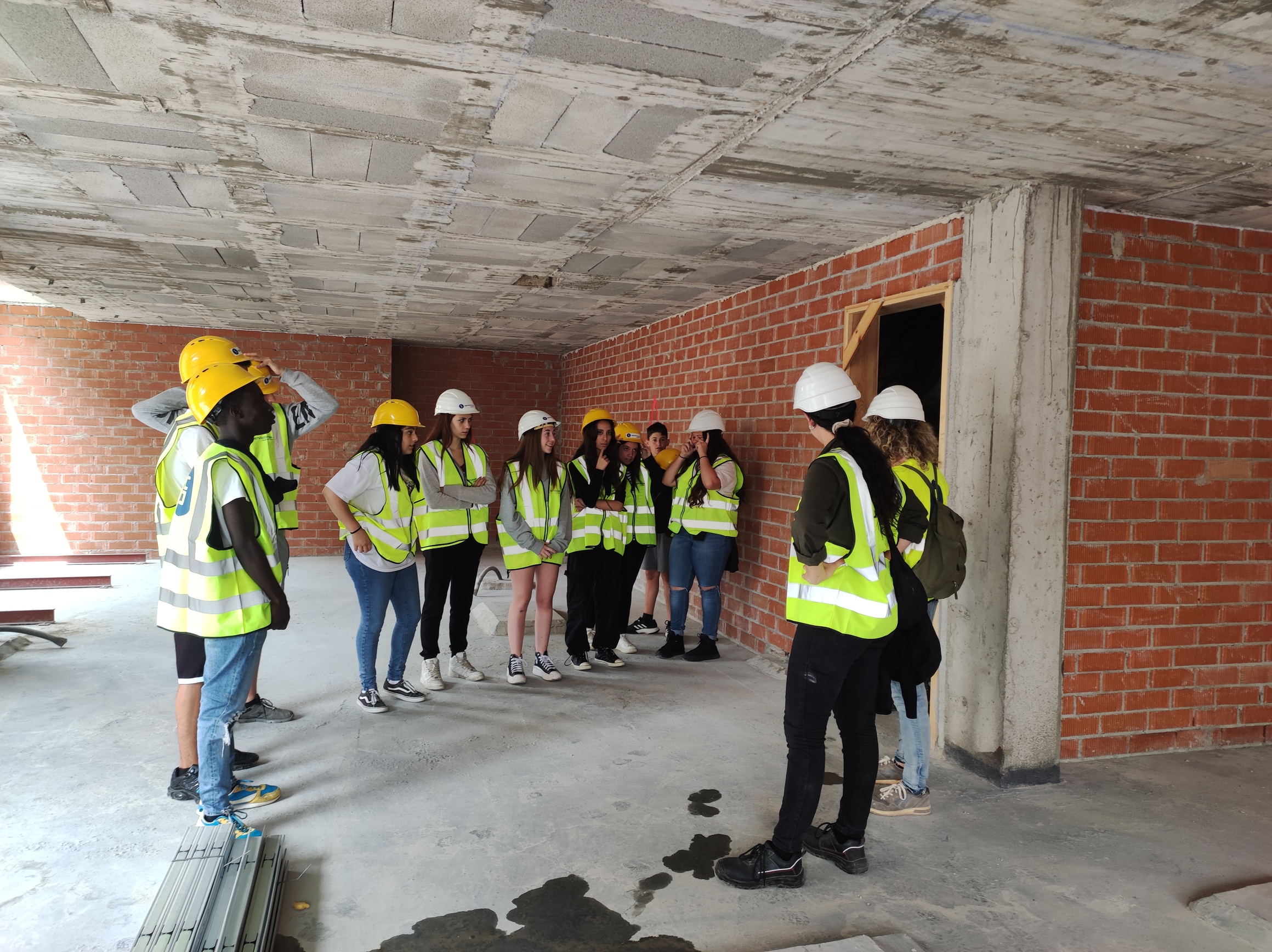 Aquesta setmana els alumnes del projecte Up Berguedà han pogut fer una visita d’obres a l’edifici que està aixecant Serviobres sobre la farmàcia Guixé de l’Avinguda Catalunya de Gironella. Equipats d’armilla i casc en grups de 10, han pogut veure com es construeix un edifici de pisos i han pogut parlar amb la Fina Lladó que els ha encoratjat a formar-se en aquest sector ja que hi ha moltes oportunitats de futur per a perfils diversos. Els alumnes han pogut observar i parlar amb diversos professionals: arquitectes, arquitectes tècnics, paletes, electricistes, instal·ladors de pladur… I els ha cridat l’atenció que també hi havia força personal femení, demostrant que hi ha oportunitats per a tothom.