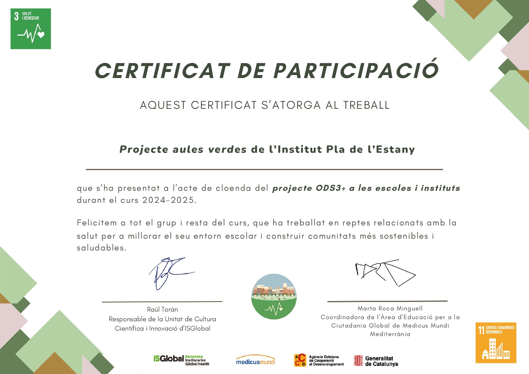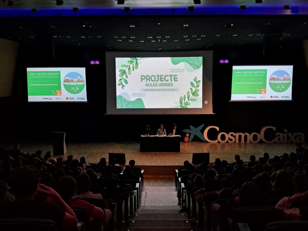 L’alumnat de biomedicina de 1r Batxillerat i de 4t de cultura científica han participat aquests mesos d’abril i maig en un projecte amb l’Institut de Salut Global de Barcelona on han presentat les seves propostes vinculant els ODS 11 Ciutats i comunitats sostenibles i l’ODS 3 de Salut i benestar. Han treballat en diferents propostes per a millorar la salut dels membres de la comunitat educativa i els treballs seleccionats en van presentar el passat 7 de maig al CosmoCaixa a Barcelona i han rebut el seu diploma de participació.