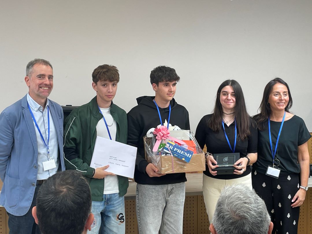 El passat dijous 26 de setembre un grup de 4 alumnes (Claudia Fariña, Marc Corominas, Adrià Boix i Nicolás Díaz) del Cicle Formatiu de Grau Superior de Desenvolupament d’Aplicacions Multiplataforma, de l’Institut Pla de l’Estany de Banyoles, van recollir el guardó com a 3r projecte més innovador dels premis ImpulsFP 2024, dels cicles formatius de grau superior del territori de Girona. L’entrega de premis es va realitzar a l’escola d’hostaleria de Figueres, on els assistents també van gaudir d’un brunch exclusiu preparat pels alumnes dels CFGM de Cuina, Serveis i Pastisseria i dirigit pels alumnes de CFGS Direcció en Cuina.
