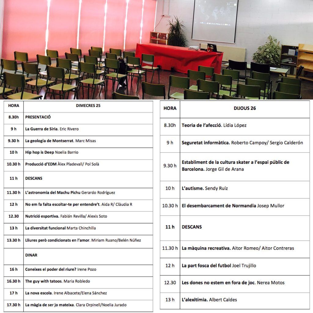 Ja ho tenim tot preparat! Contents que demà i dijous els nostres alumnes de 2n de Batxillerat exposin i defensin els seus treballs en públic. Molts ànims a tots! Us deixem els horaris dels dos dies.