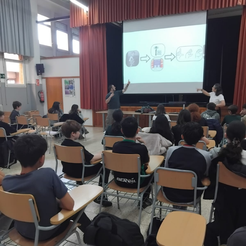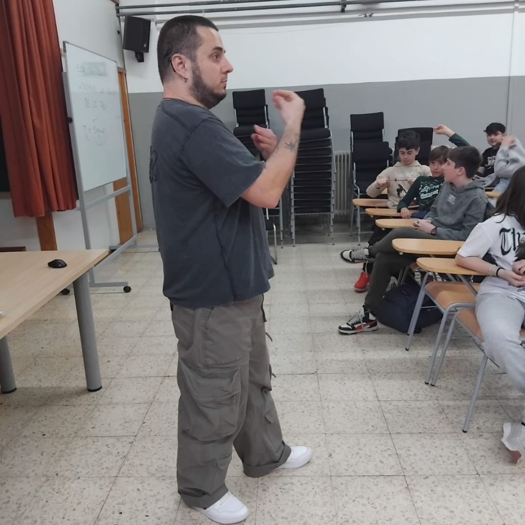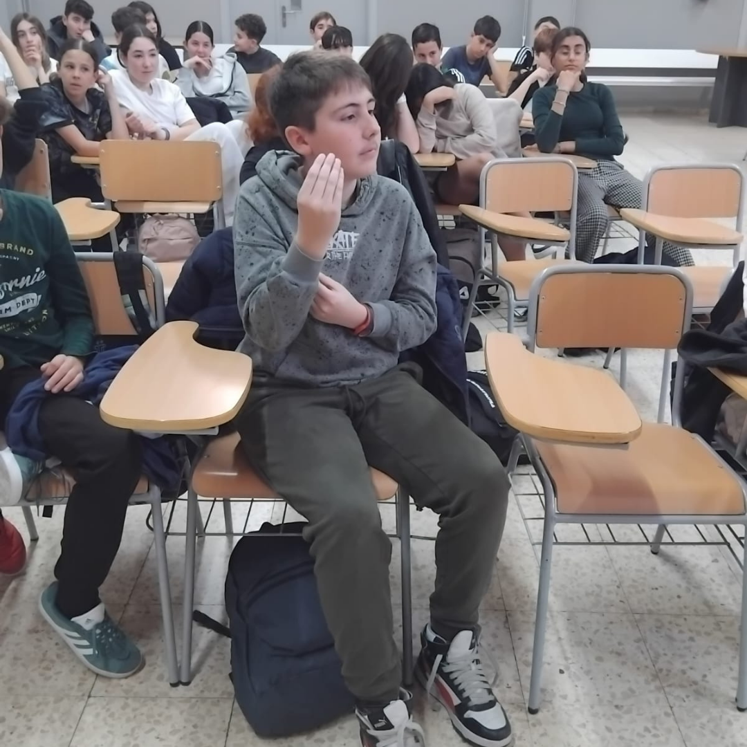 L’alumnat de 1r d’ESO ha participat en una xerrada amb una persona sorda, on han pogut apropar-se a la llengua de signes i a la realitat de la comunitat sorda.