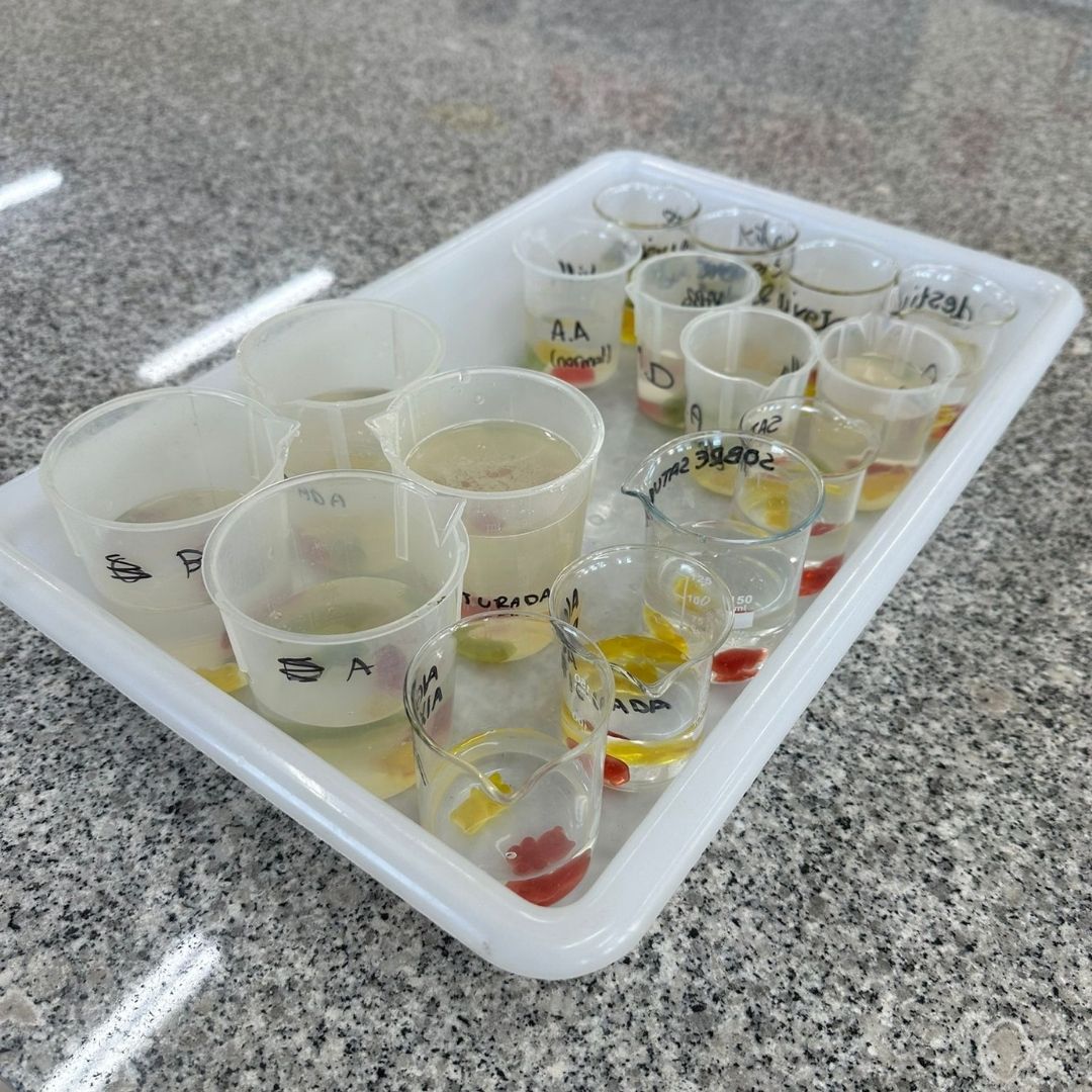L’alumnat de 1r de Batxillerat de Biologia ha dut a terme una pràctica de laboratori per estudiar l’osmosi, és a dir, el moviment de l’aigua, utilitzant gominoles com a model de cèl·lula.