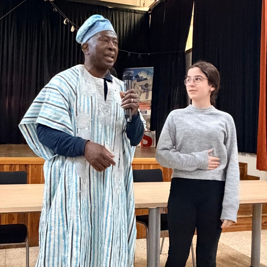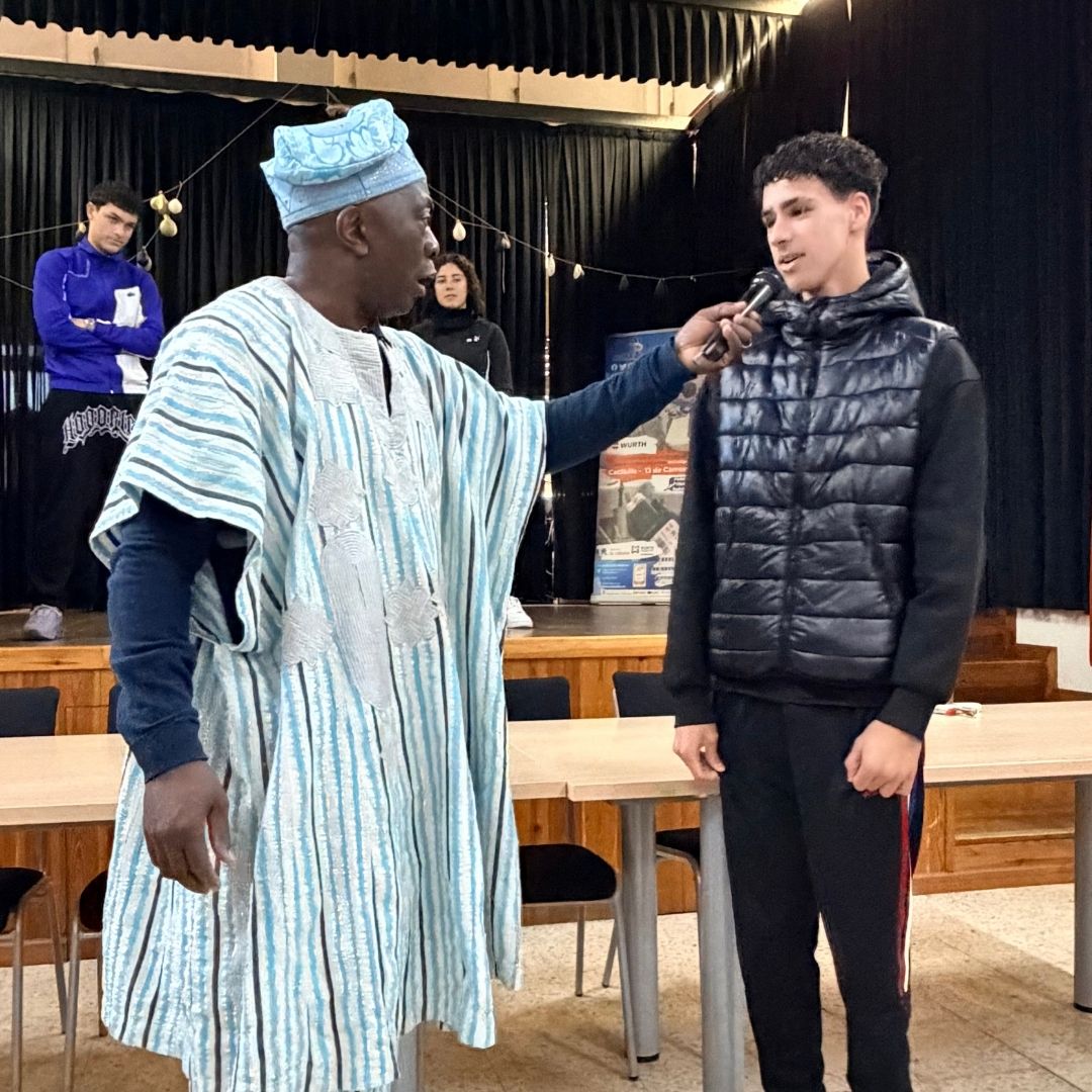 Durant la sessió, l’autor va compartir contes tradicionals camerunesos i va convidar l’alumnat a participar-hi activament, creant un ambient proper, dinàmic i ple de moments significatius.