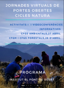 – Dimecres 28 d’abril, a les 19:00h: Cicle formatiu de grau mig d’Aprofitament i Conservació del Medi Natural.