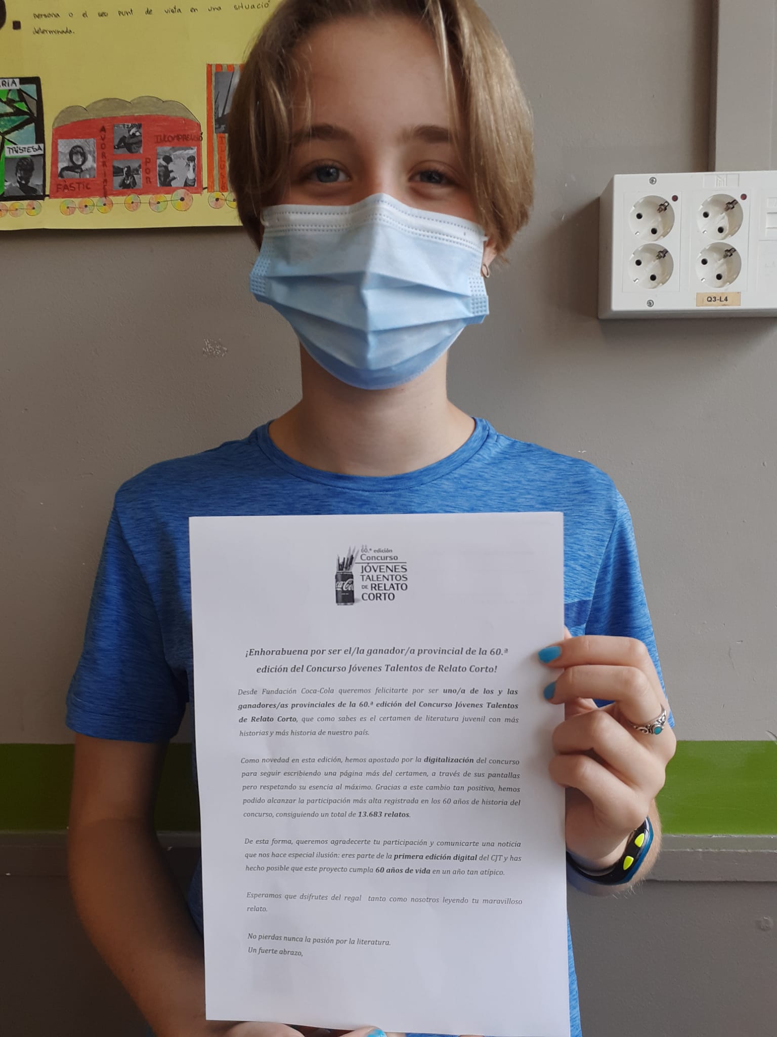 La alumna Lua Wouters de 2º de ESO B ha sido una de las ganadoras provinciales de la 60a edición del Concurso Literario Jóvenes Talentos de Relato Corto. El premio obtenido es un patinete eléctrico , un casco de protección, una mochila y una Camiseta. La felicitamos y la animamos a que continúe con esta ilusión y afición por la lectura y la escritura.
