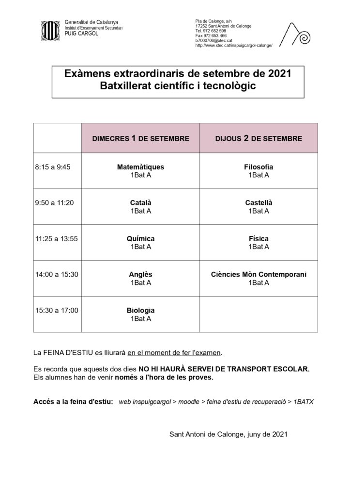 CALENDARI EXÀMENS SETEMBRE 1rBATXILLERAT HUMANÍSTIC-SOCIAL Llegeix més »