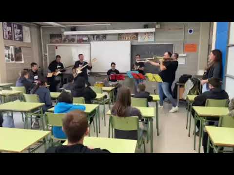 Avui ens han vingut a visitar des de l’Escola de música La Moderna de Calonge i Sant Antoni. Han preparat una activitat per a l’alumnat de 1r d’ESO B i D. Al segon trimestre ens tornaran a visitar per dur aquesta activitat a 1r d’ESO A i C. Ens han muntat una banda amb diferents