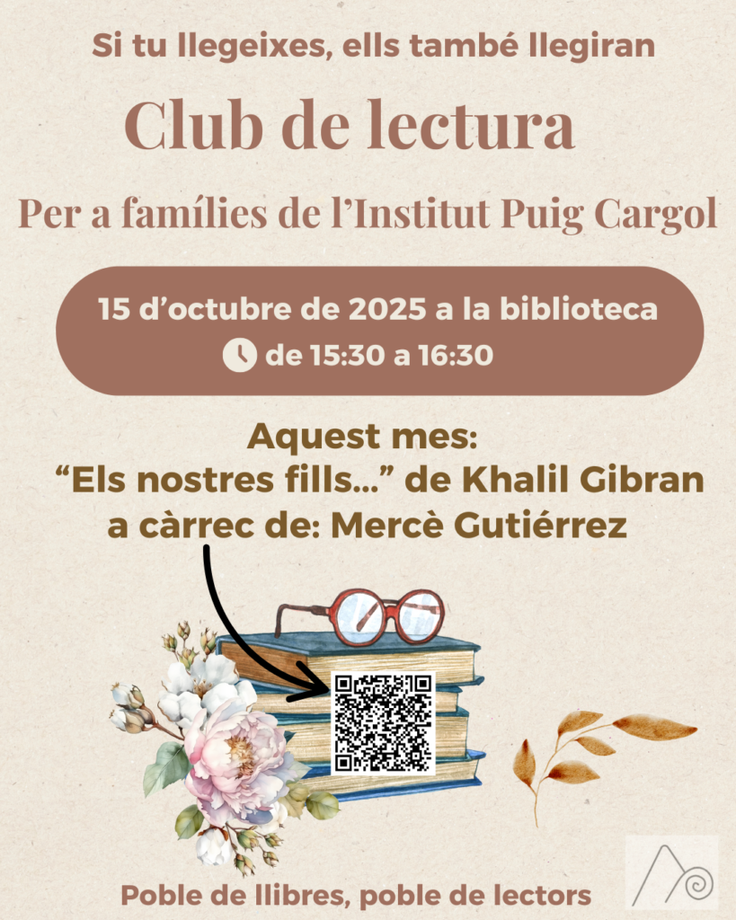 El proper dimecres 15 d’octubre comença el club de lectura adreçat a les famílies del nostre centre. Us esperem a les 15:30h. a la biblioteca de l’Institut. Aquesta primera sessió la portarà la Mercè Gutiérrez amb un fragment de Els nostres fills…de Khalil Gibran. Es farà una lectura de fragments per tal de motivar la lectura. […]