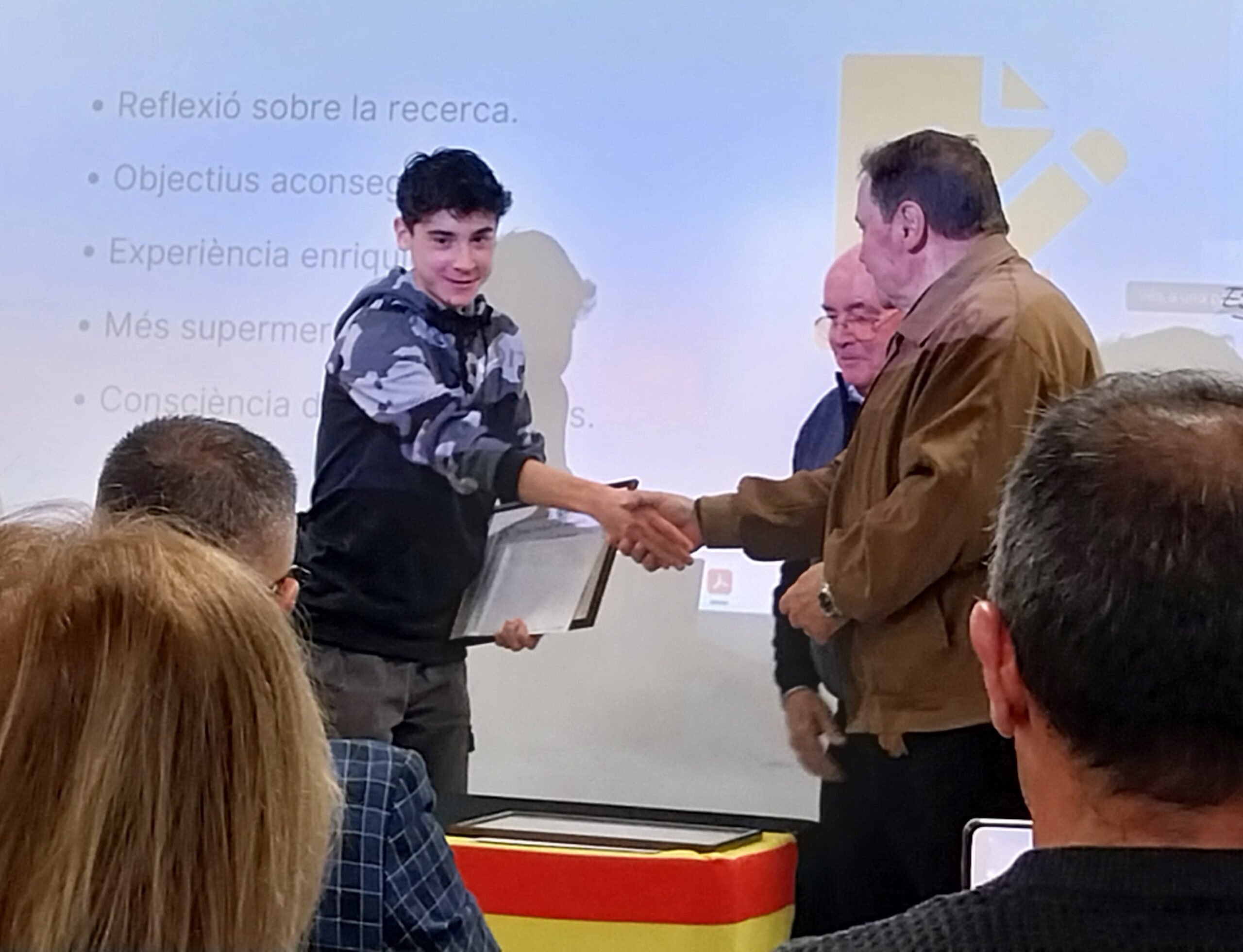 Ens complau compartir una notícia molt especial que reflecteix el talent i l’esforç dels nostres estudiants. El dia 23 d’abril, un dels nostres alumnes de 2n de Batxillerat, Pol Alaminos Garcia, va rebre el Premi de l’Associació Germandat Arturo Mundet, pel seu treball de recerca sobre L’evolució del preu als supermercats de Calonge i Sant Antoni. Aquest treball també ha estat premiat